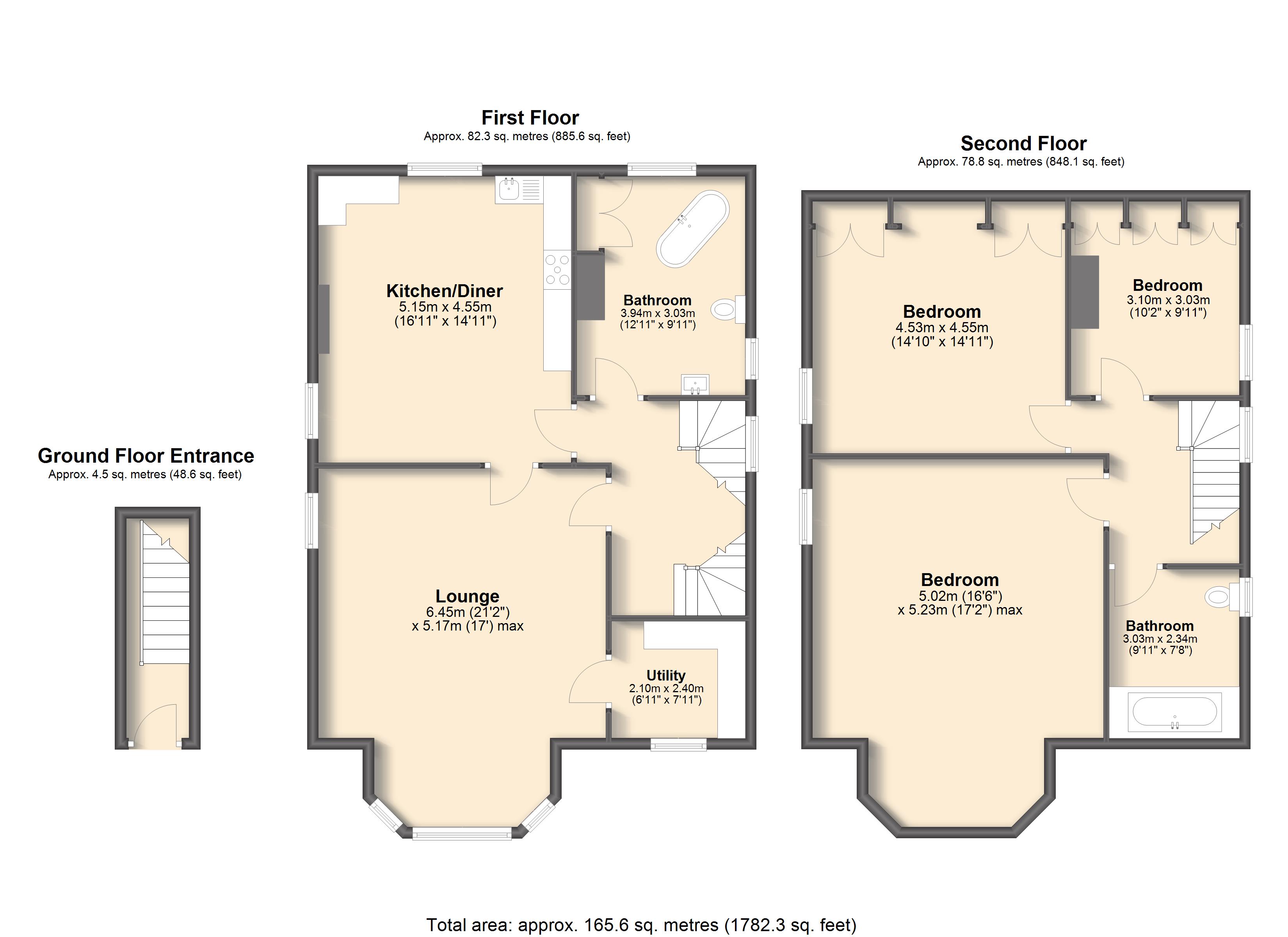The bedrooms are all good sizes, with two generous doubles being well complemented by a single bedroom. All provide ample storage space with plenty of room for fitted or stand-alone furniture. The property also features two bathrooms, one located on each floor, providing convenience and flexibility for residents and guests alike. The first-floor bathroom is stunning, boasting an abundance of character with classic fixtures and fittings, as well as a roll-top bath. The second floor features a more modern bathroom and sits alongside the three bedrooms.