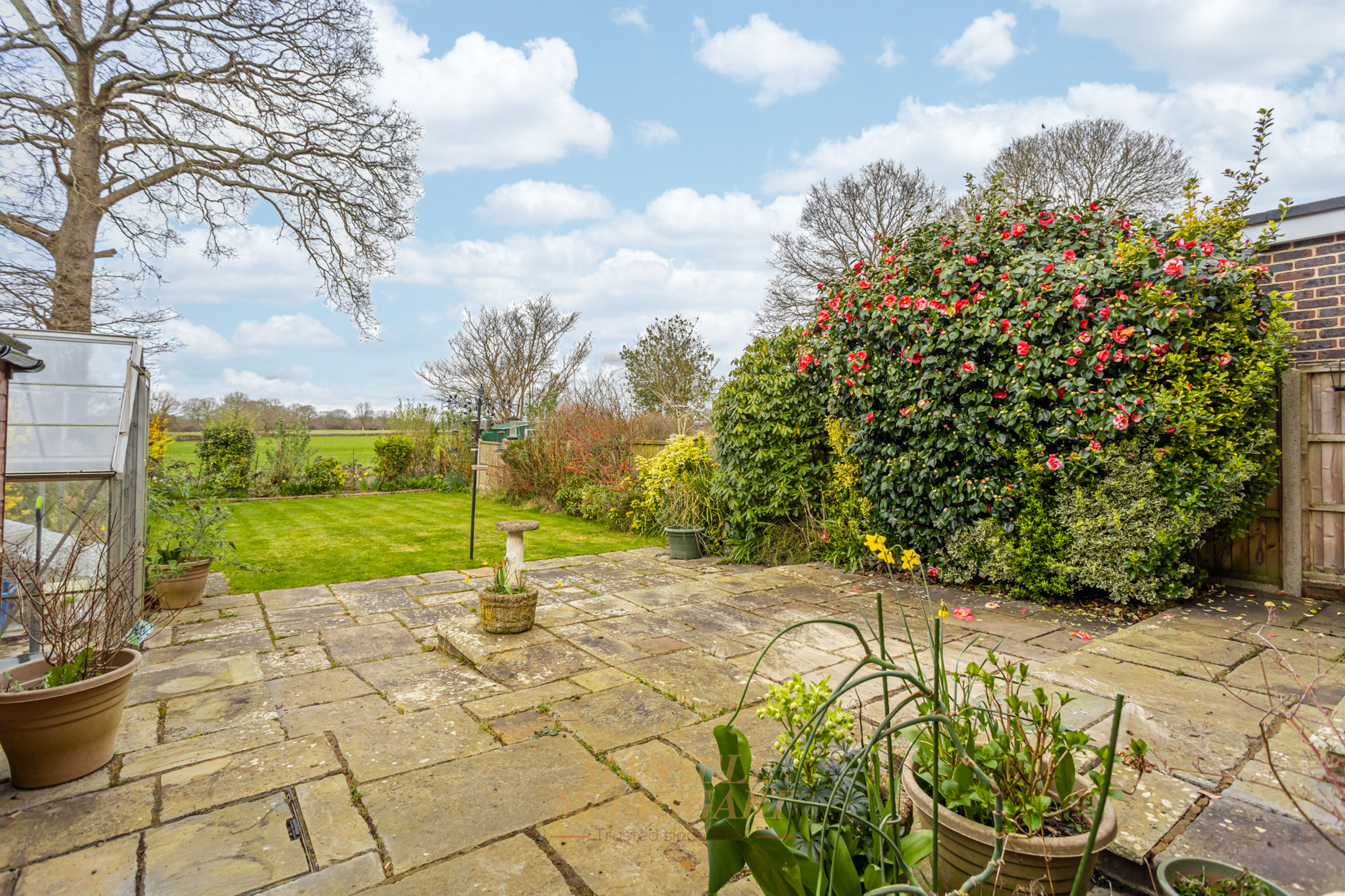 - Large frontage providing private parking with access to an attractive landscaped garden overlooking fields beyond