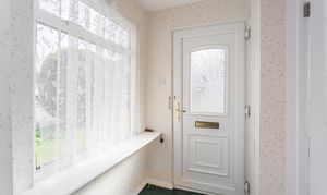 The property is approached via a private block-paved driveway, offering convenient off-road parking. The property needs a small amount of modernisation. The front door opens into a light and airy entrance hall, with ample space to the left for coats and shoes. From here, there is access to a versatile converted room which could serve as a fourth bedroom, playroom, or home office.