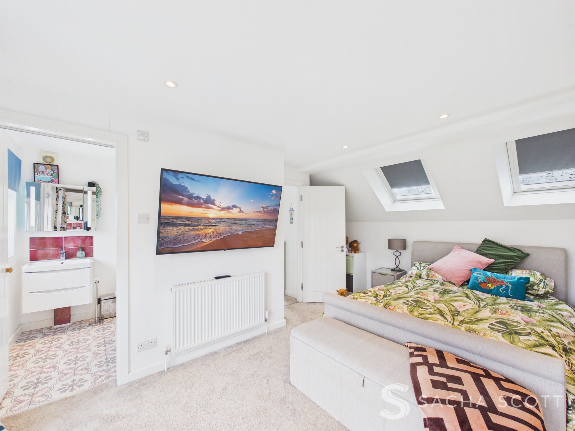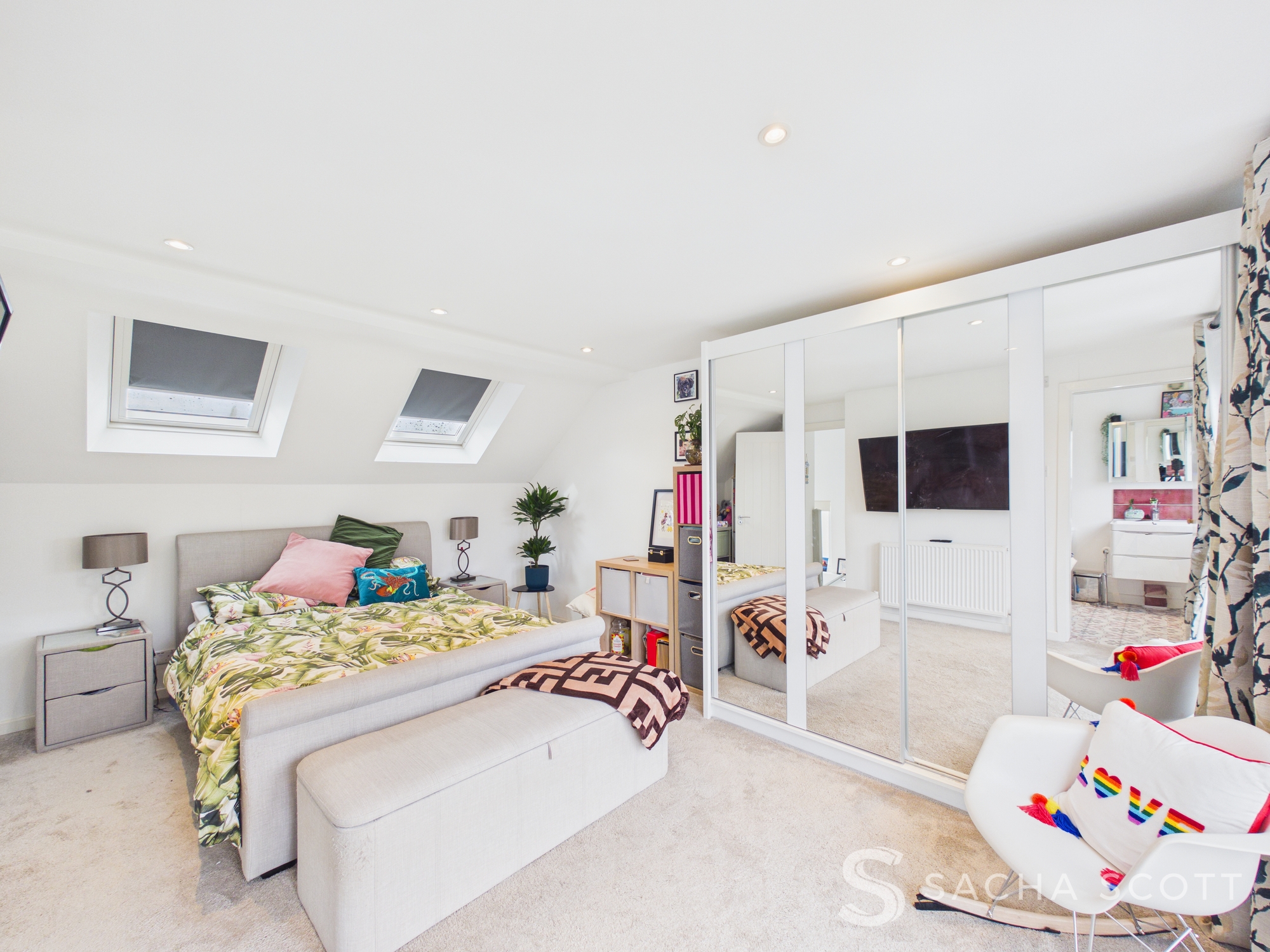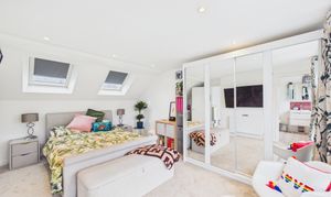 Neutrally presented, this stunning loft conversion enjoys views over the garden via Juliet balcony doors, with additional natural light from Velux windows and the benefit of an en-suite bathroom.