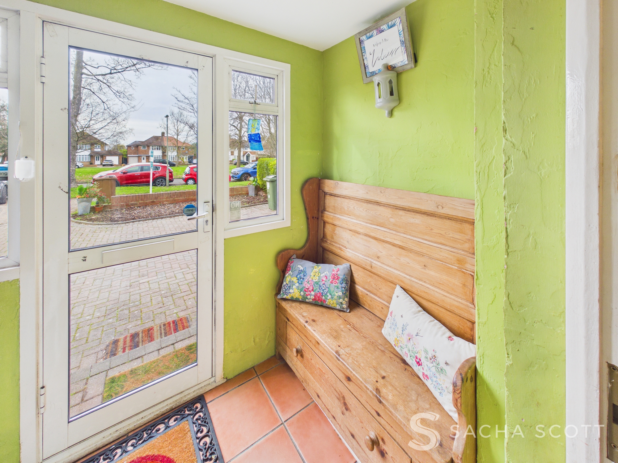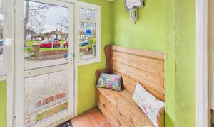 A handy, bright porch with seating area, perfect for kicking off muddy boots.
