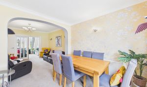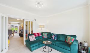 Neutrally decorated, the main lounge offers views over Timbercroft green and is accessed via wide, glass doors from the second reception at rear. This lovely room receives good natural light from a generous bow window.