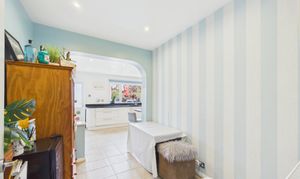 Neutrally presented, this additional reception space is currently used as a dining room and offers sliding door access to the garden at the rear. Subject to advice and regulations, there is potential to open this room up to allow for an open plan kitchen/living area at the rear of this lovely family home.