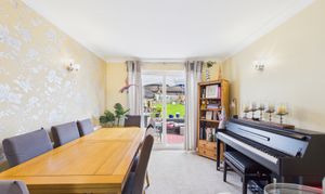 Accessed via the entrance hall and sitting between the lounge at the front and the extended dining room to the rear, this handy extra space is neutrally decorated and currently used as a snug.