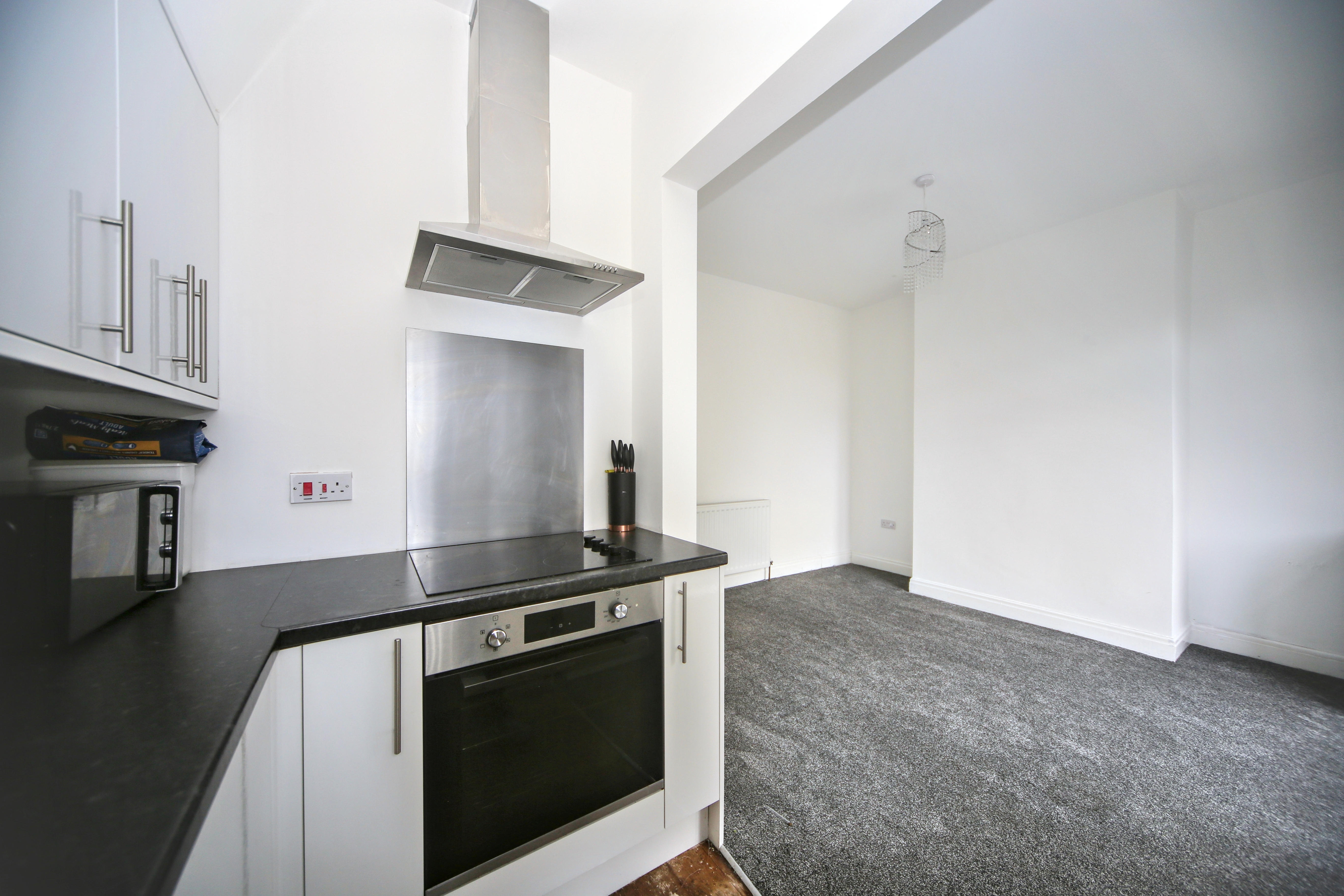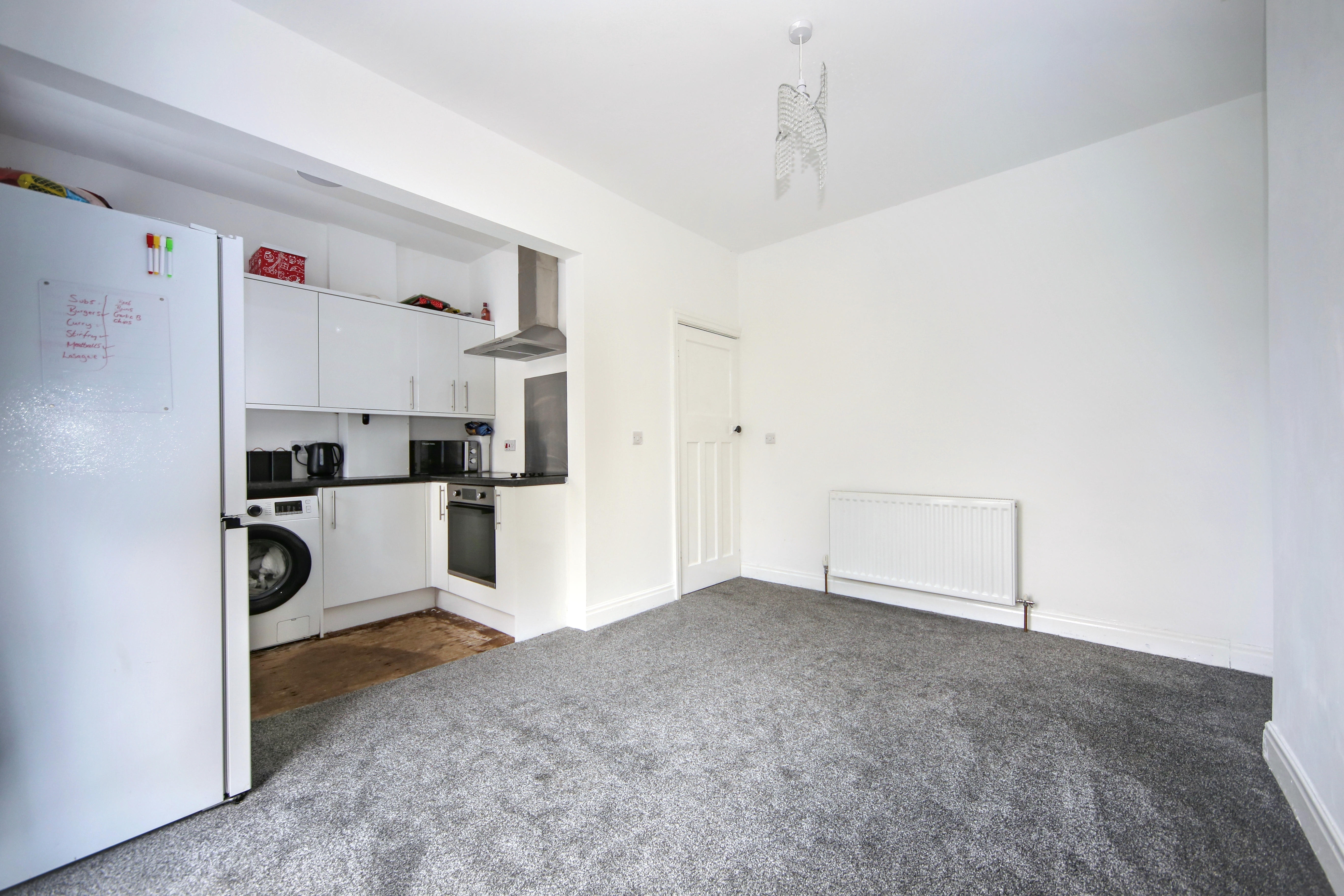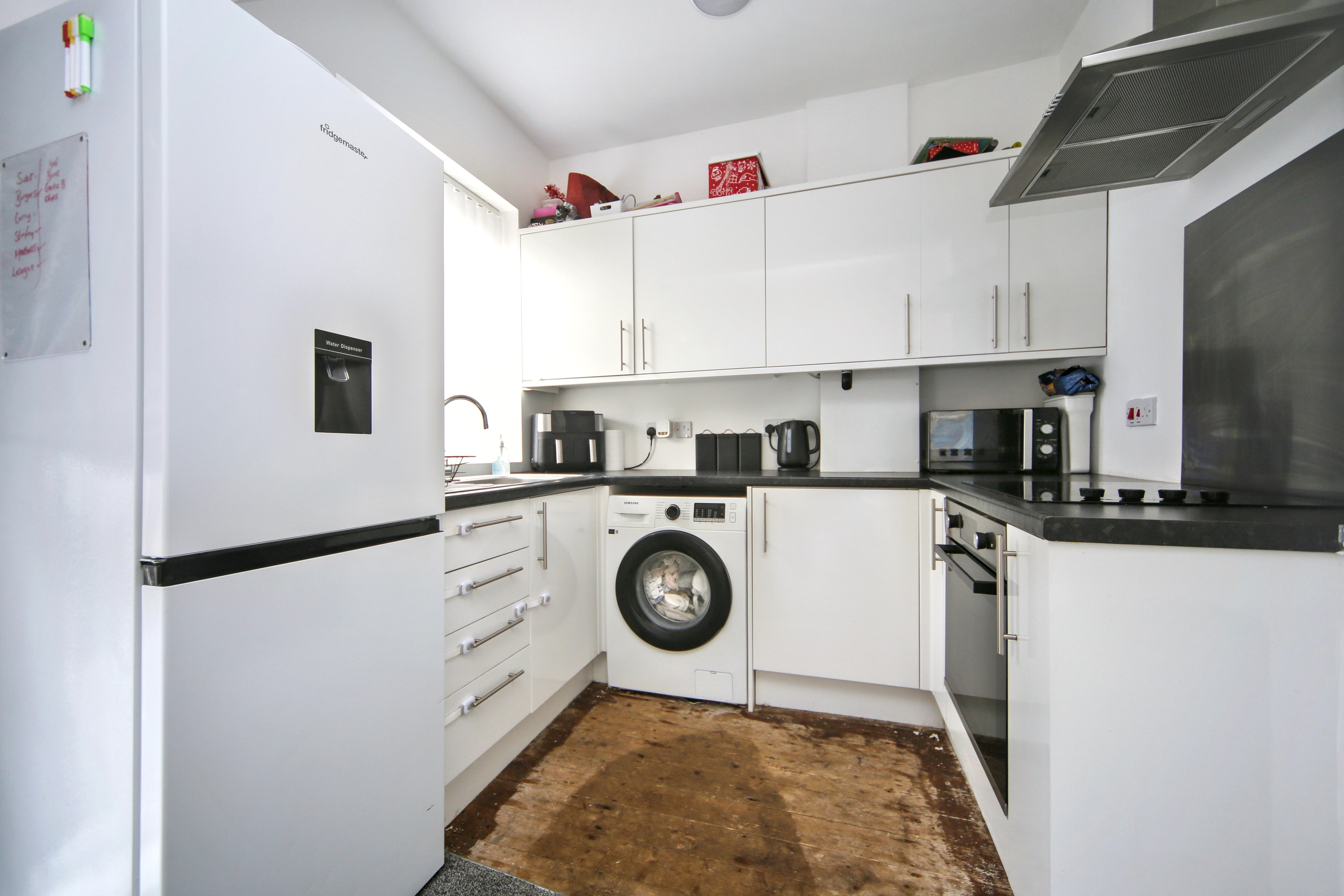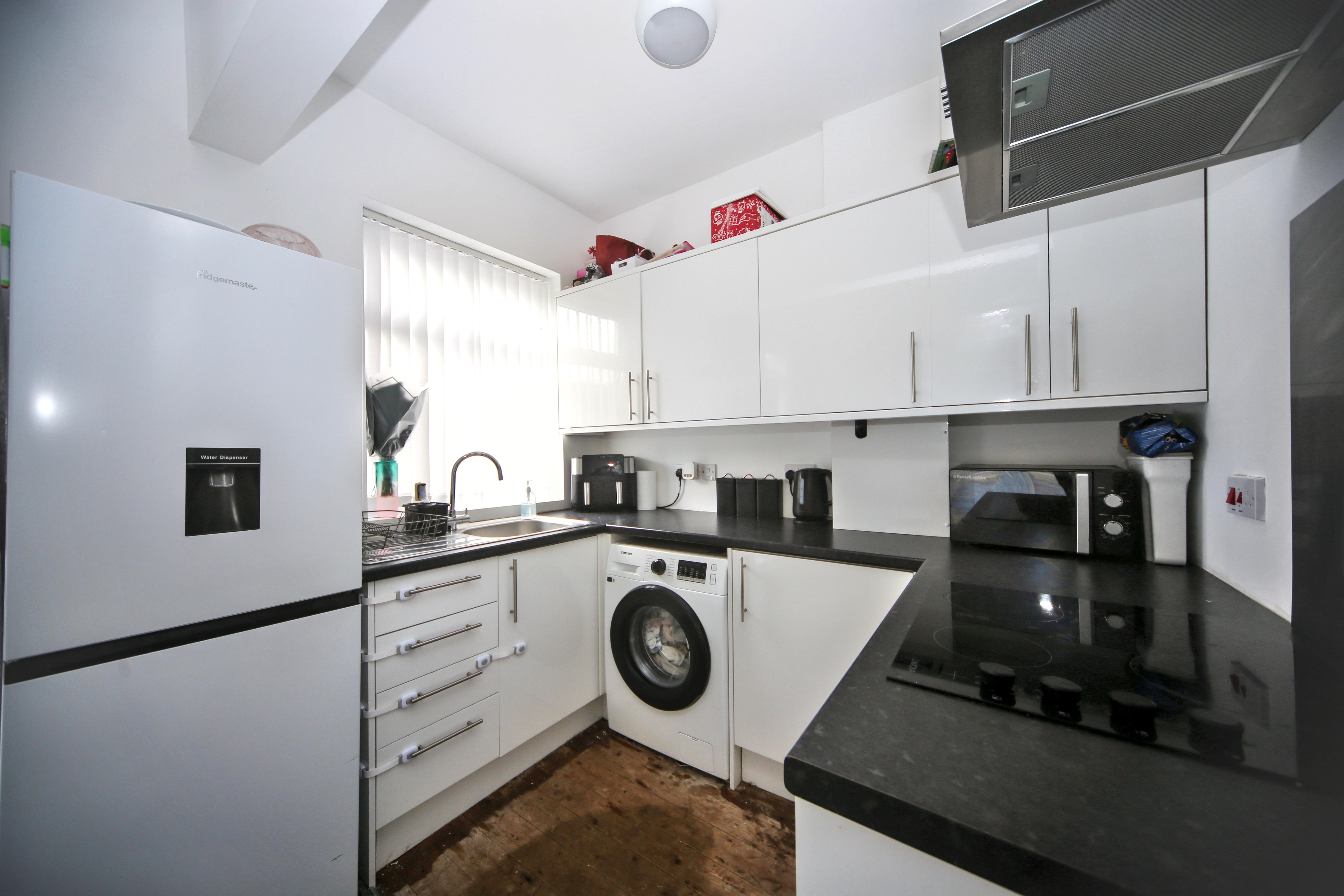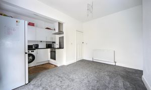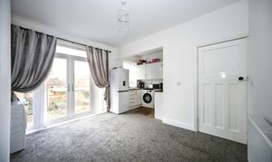 To the front is a bright lounge featuring a bay window, while to the rear is an impressively large open-plan kitchen and dining area which also provides a second reception space, perfect for entertaining or family gatherings. The kitchen itself is compact and functional, complementing the generous living area.