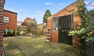 - Low-maintenance, two-level rear garden with useful outbuilding
