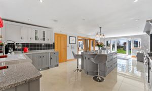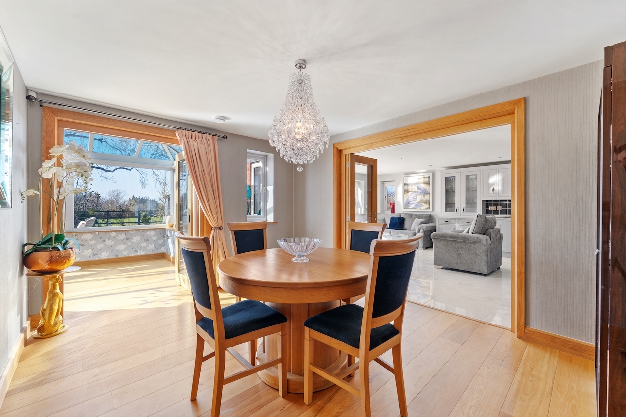 Exemplifying the perfect party flow, the conservatory also leads into the dining room – itself opening via bifolding doors into the kitchen, connecting the conservatory, snug, dining room and culinary hub; ideal when entertaining and for every day family functionality.