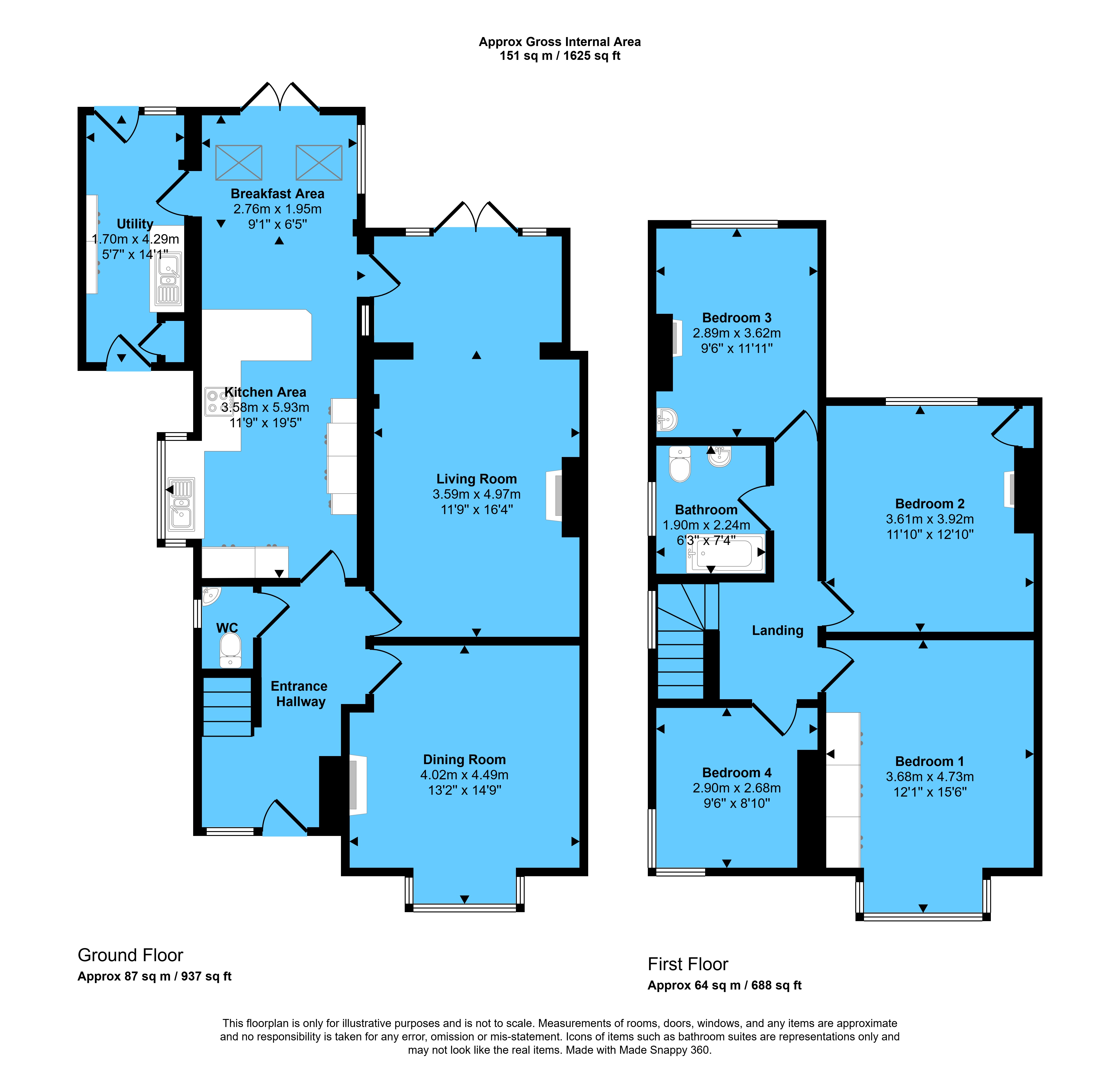 Upstairs, the accommodation continues to impress with three generously sized double bedrooms and a versatile single, each full of traditional features and large windows that enhance the feeling of space and light. The family bathroom services all bedrooms and is finished to a high standard, offering both style and functionality.