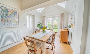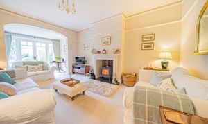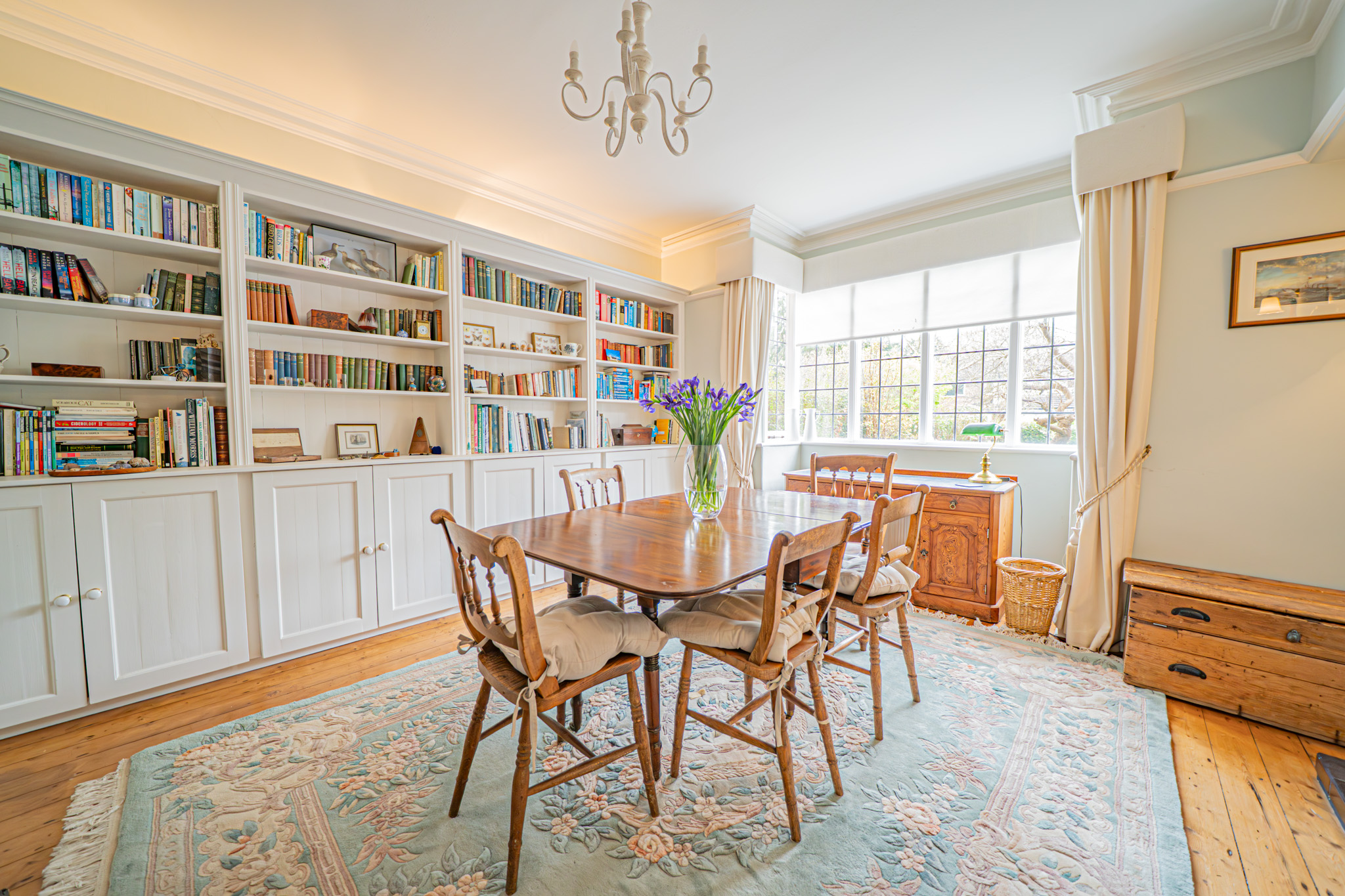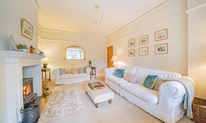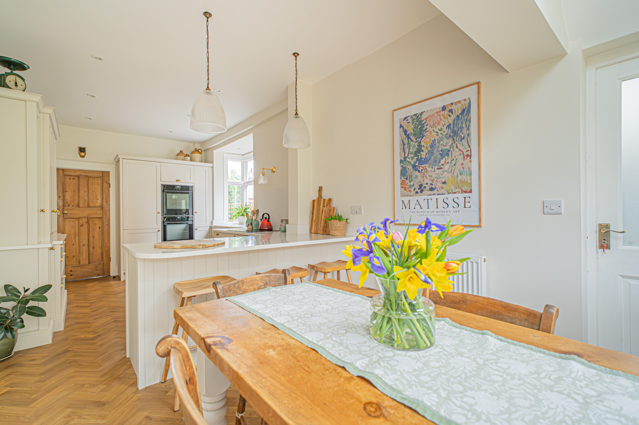 The property is accessed via a welcoming entrance hallway that immediately sets the tone for the rest of the home, leading through to two large and versatile reception rooms. The first is a formal dining room, perfect for entertaining, with an impressive bay window that bathes the room in light, while the second reception is a spacious living room featuring wonderful views of the rear garden and a striking log burner that creates a cosy focal point.