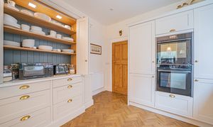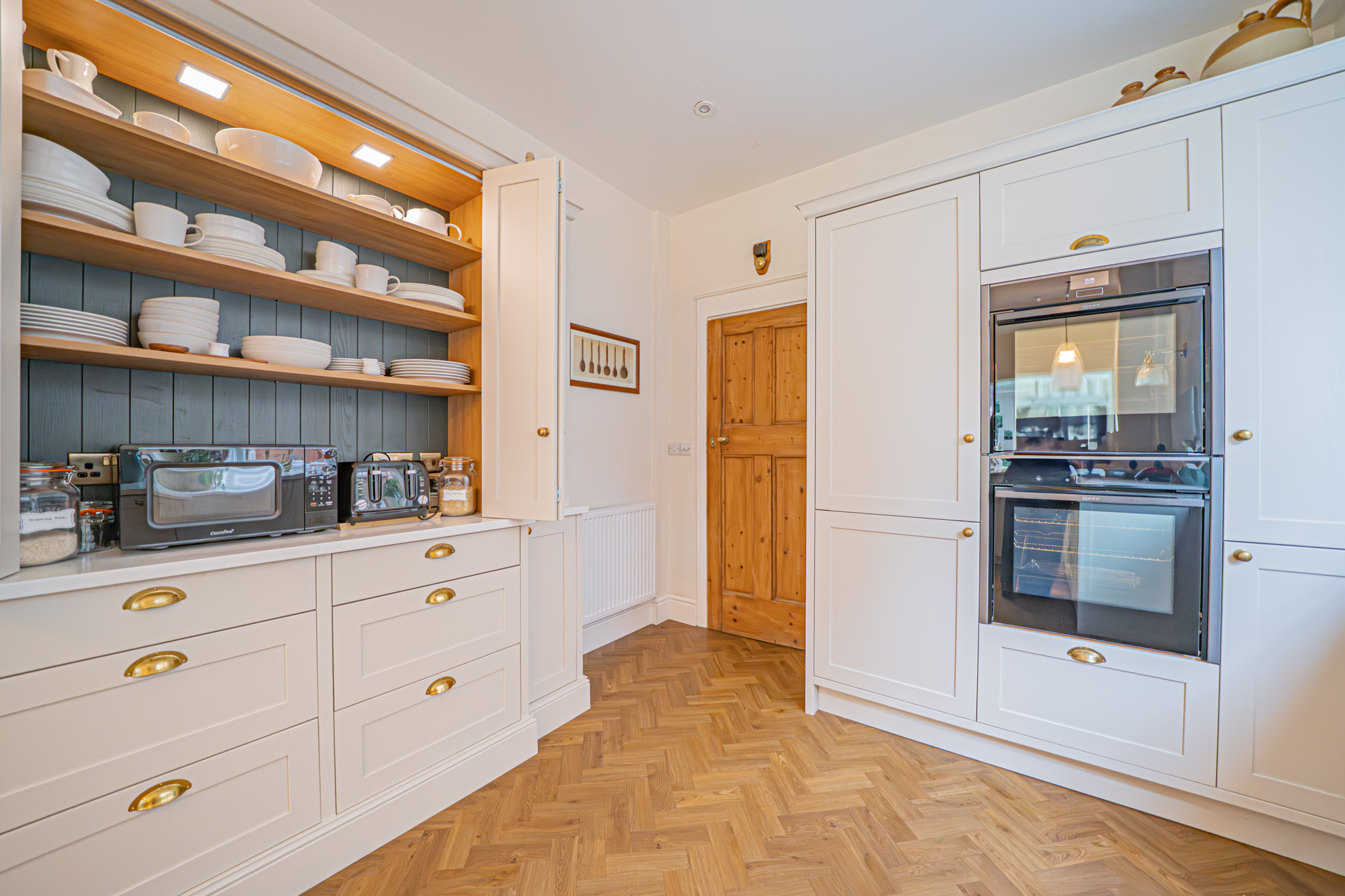 Kitchen was specially designed for easy use of and access to all units and appliances. Ideal for those who's needs may require this. Dresser unit / breakfast cupboard with sliding easy manoeuvre doors designed to be keeping to be in keeping with Edwardian period