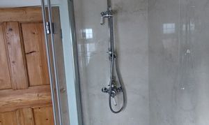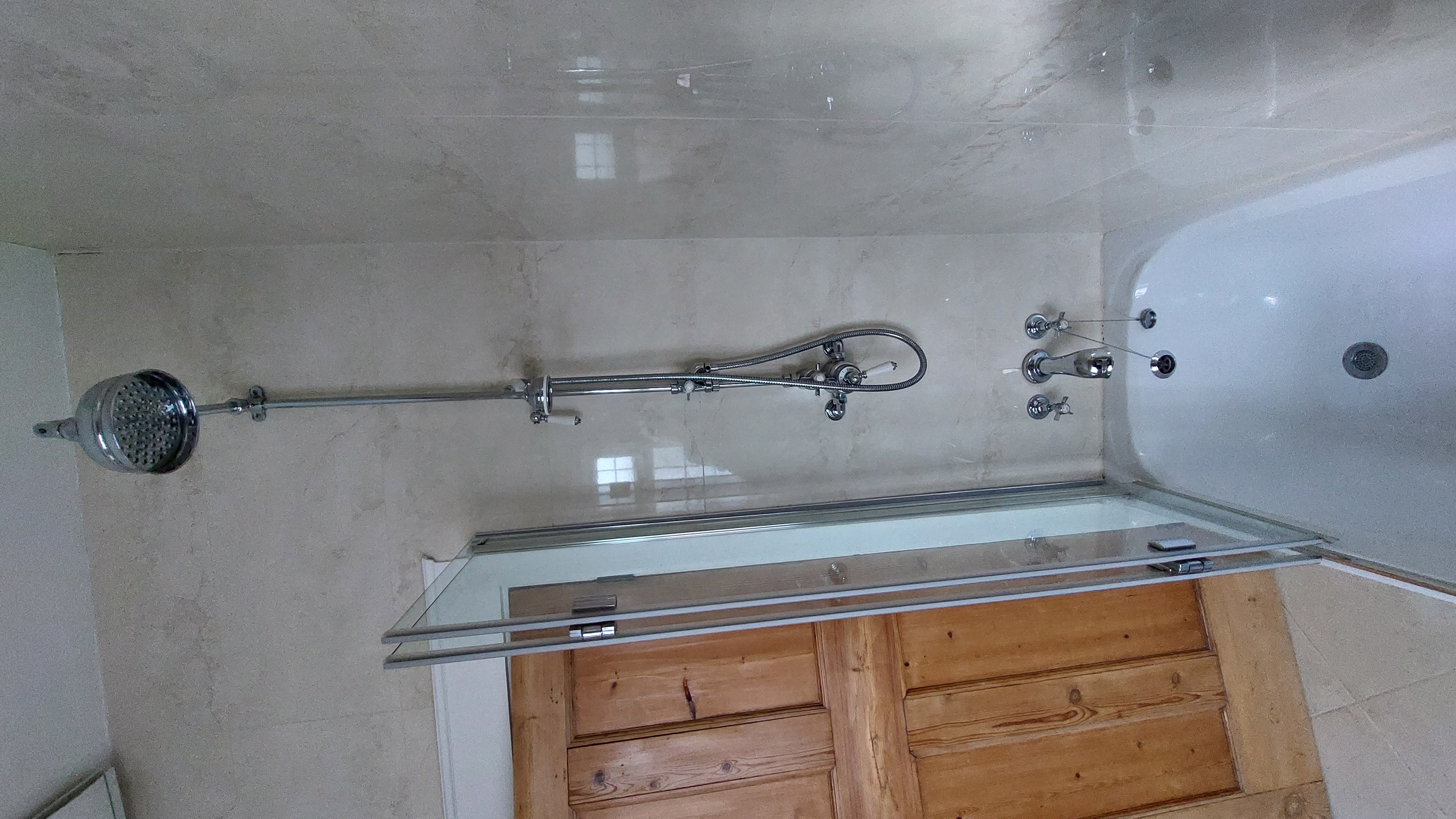 Imperial bathroom fittings over bath shower with rain and hand held shower