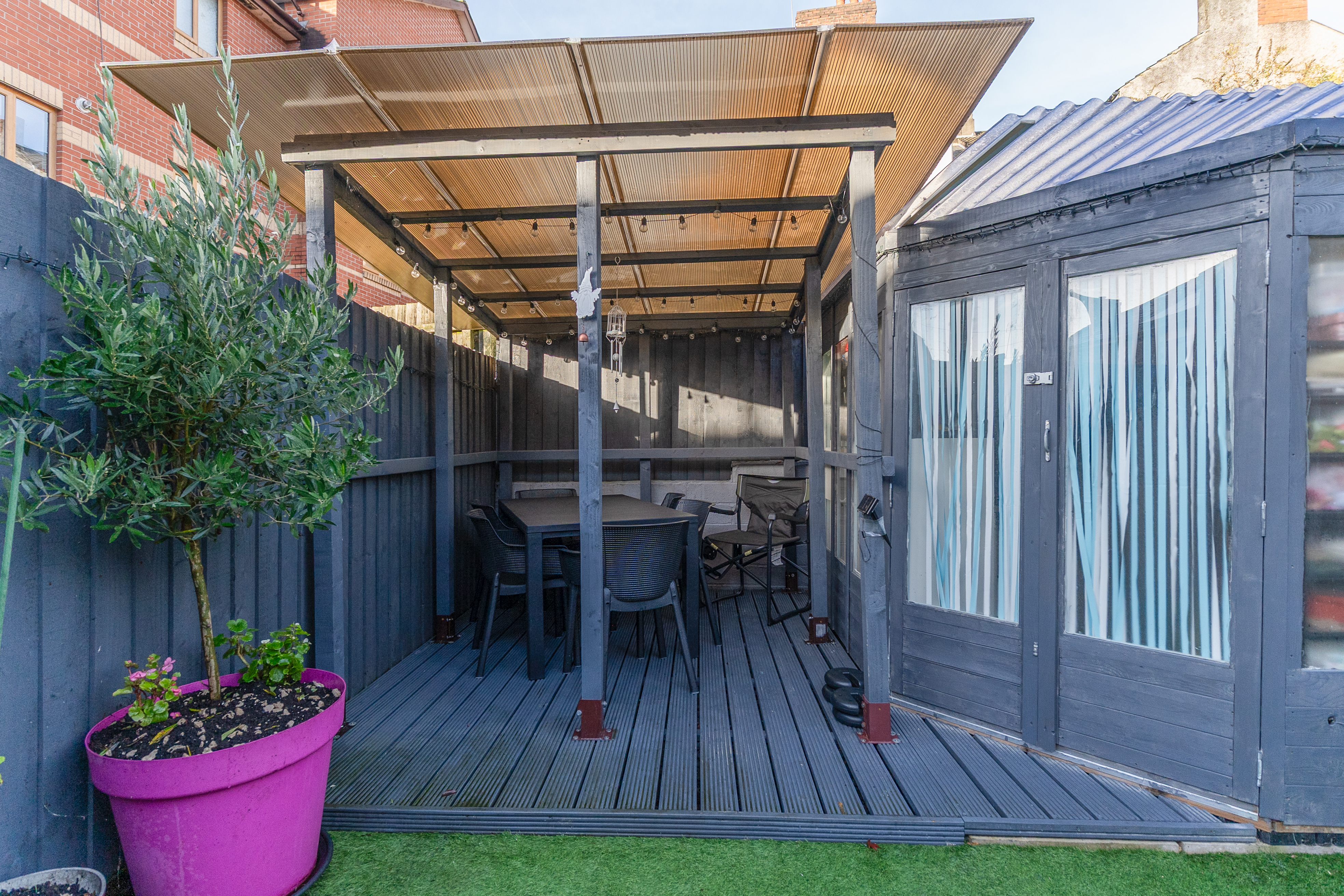 Externally, the property boasts a beautifully maintained rear garden, designed for both relaxation and entertaining. The garden includes an artificial lawn for easy maintenance and a covered seating area, perfect for year-round enjoyment. At the far end of the garden is a charming summerhouse, offering additional space that could be used as a home office, hobby room, or peaceful retreat. The enclosed layout ensures privacy and provides a safe environment for children or pets.