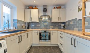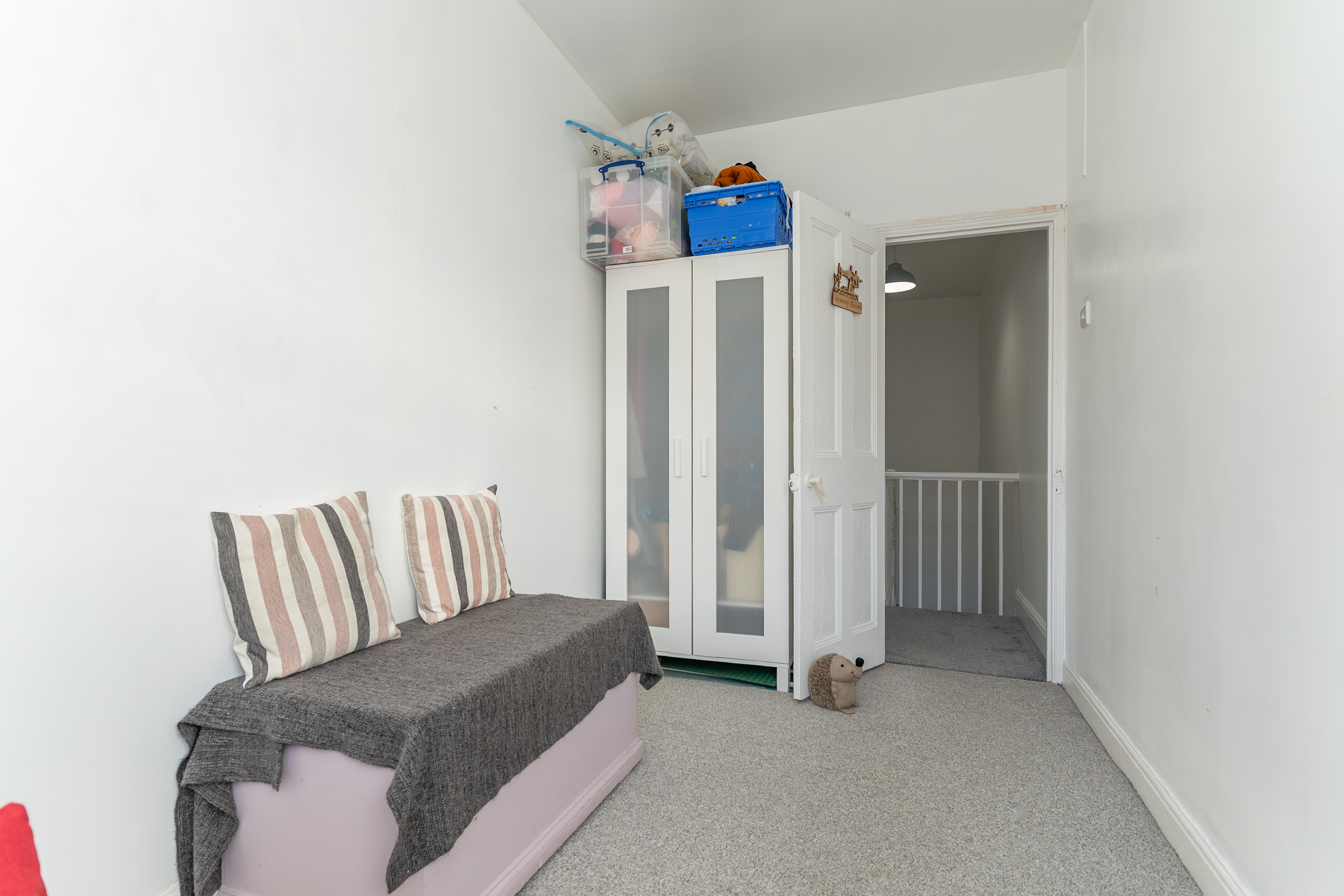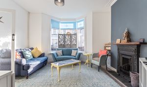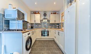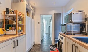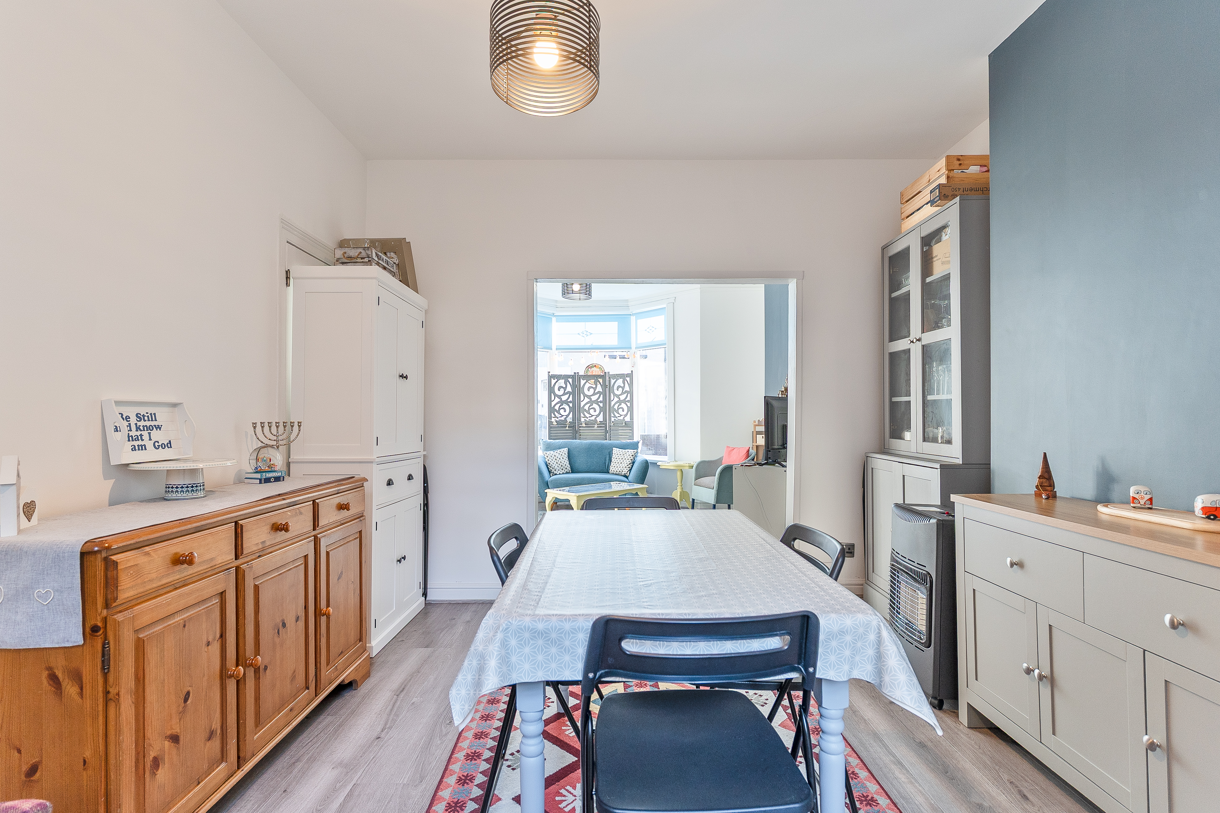 You enter the property via a welcoming hallway, which provides access to the main living areas and stairs leading up to the first floor. To the left is the open-plan lounge/diner, a bright and spacious area that spans the length of the property. This inviting room features tall ceilings that enhance the sense of space and a beautiful bay-fronted window that allows plenty of natural light to fill the room. The layout offers ample space for both comfortable seating and a formal dining area, making it ideal for family living or entertaining guests. To the rear of the property is the kitchen, fitted with a generous range of storage units and worktop space, providing practicality and functionality. The kitchen also offers direct access to the rear garden, creating a smooth flow between indoor and outdoor living.