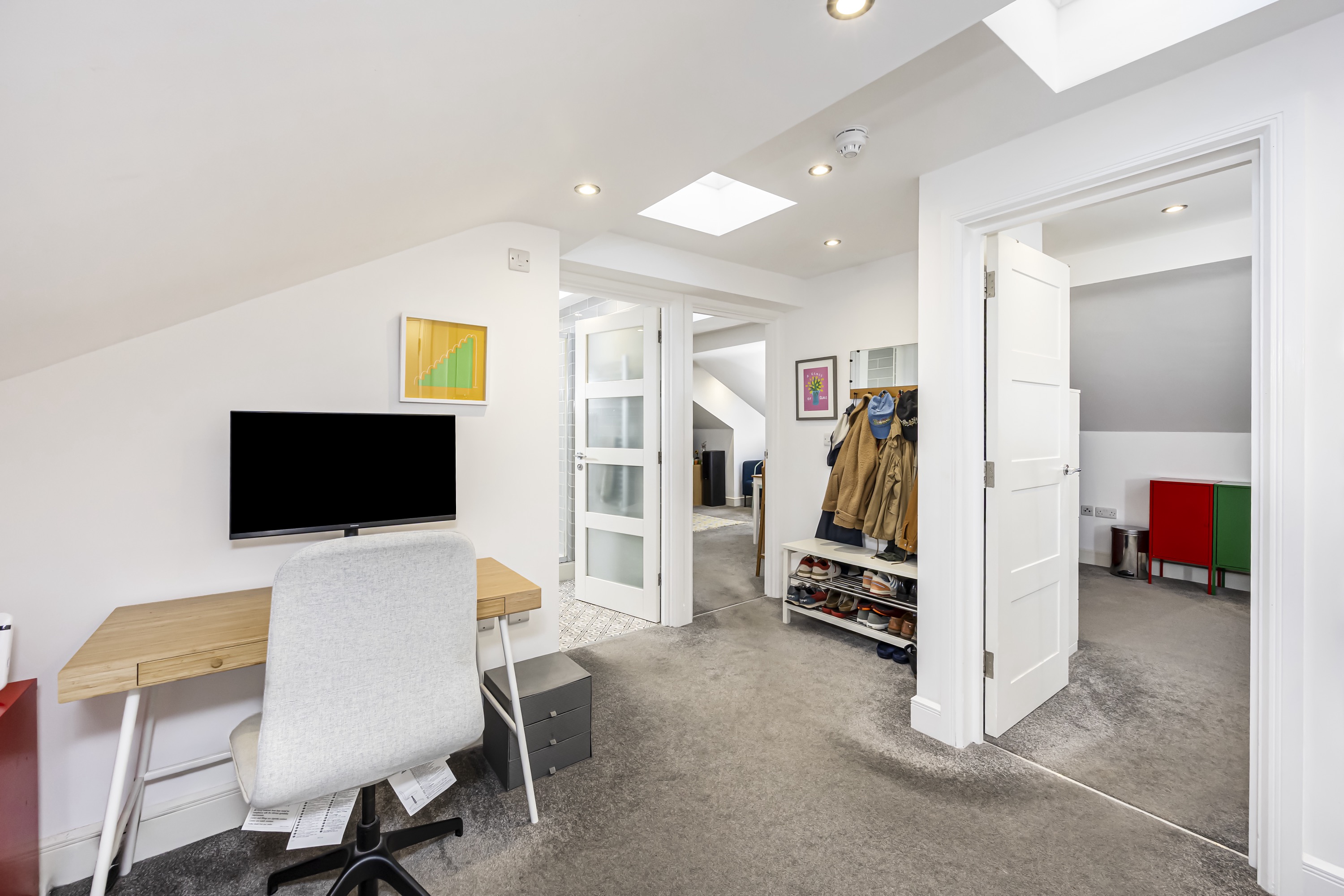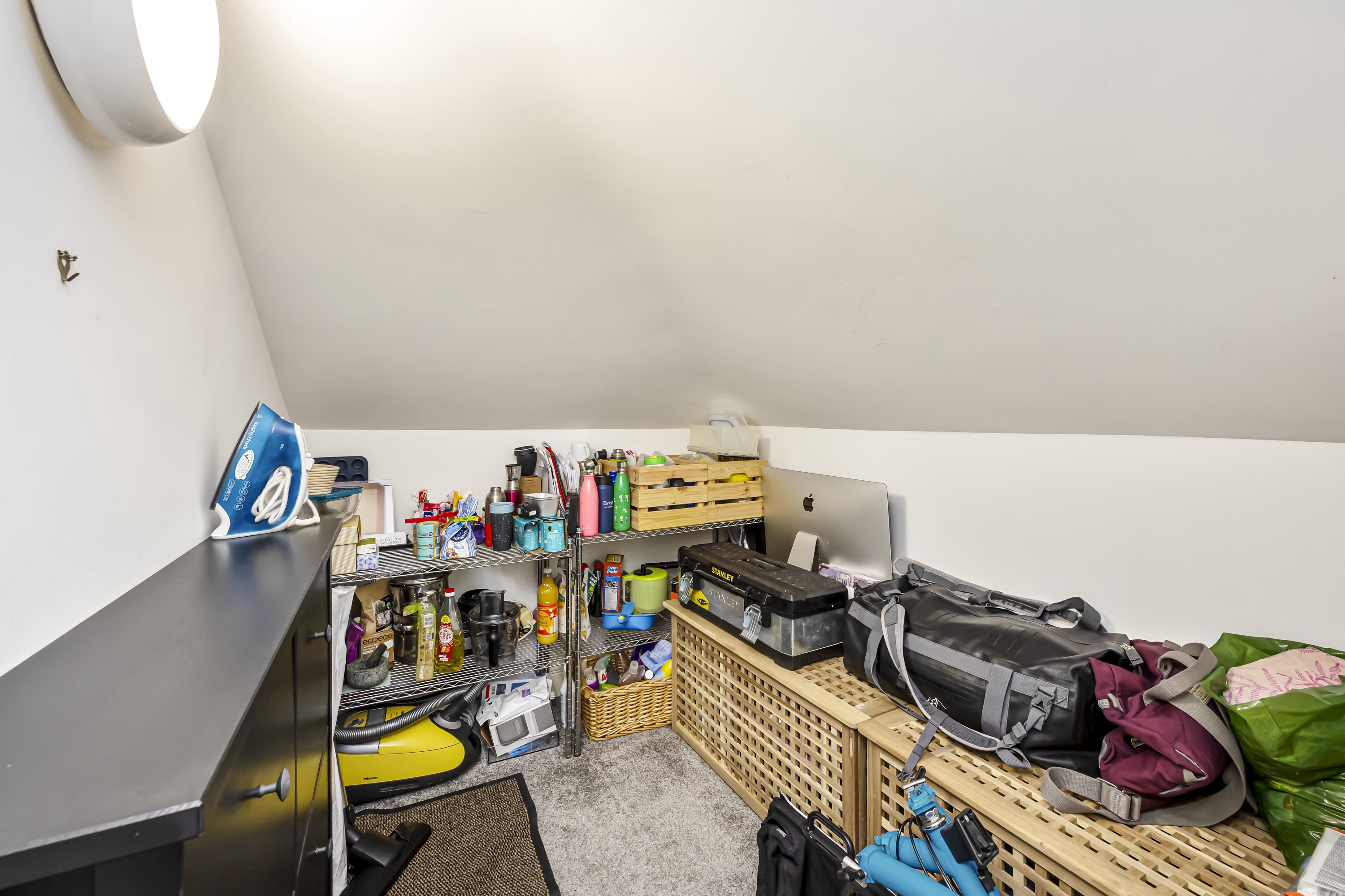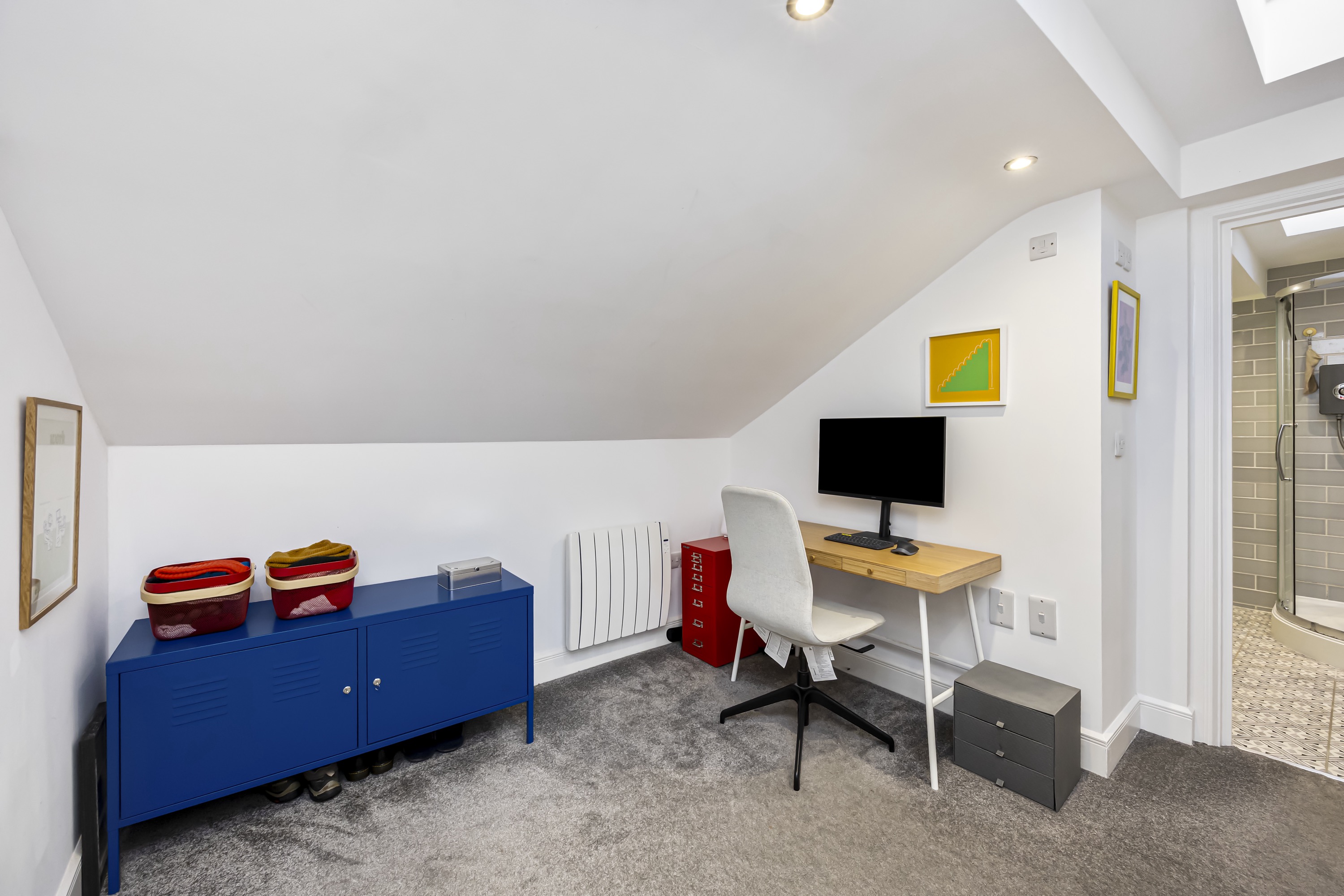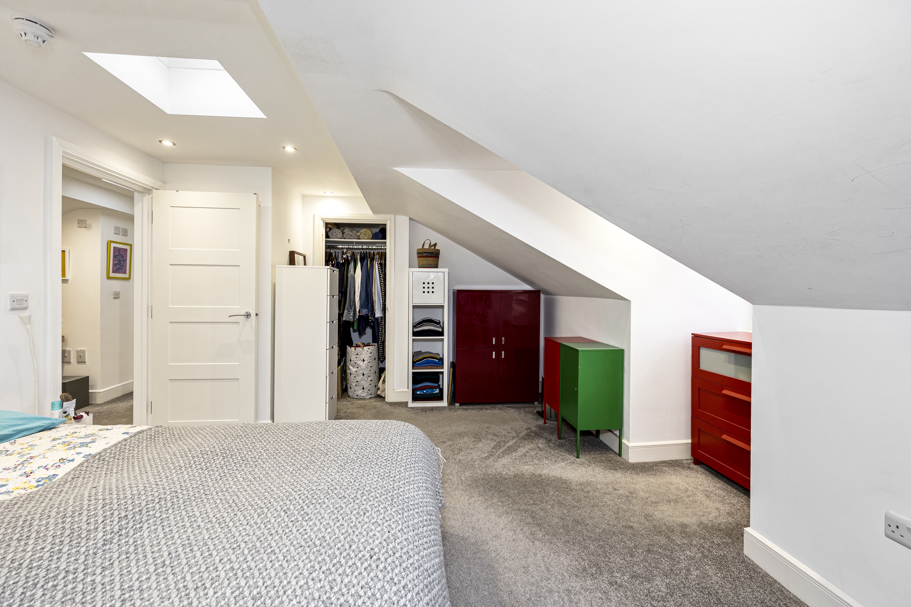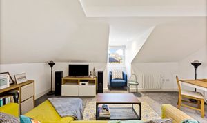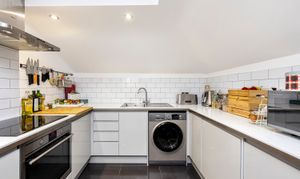The apartment features a spacious double bedroom with useful eve storage, providing ample space for personal belongings. The L shaped living and kitchen area benefits from a skylights, creating a bright and welcoming atmosphere that is ideal for both relaxing and entertaining. The modern bathroom is fully tiled and comprises a walk in shower, WC, and wash hand basin, all finished to a contemporary standard. The building has recently undergone renovation, and the communal areas are attractively decorated, ensuring a pleasant environment throughout.