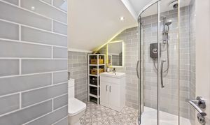 - Modern And Contemporary Bathroom Fully Tiled, WC, Wash Hand Basin & Walk In Shower