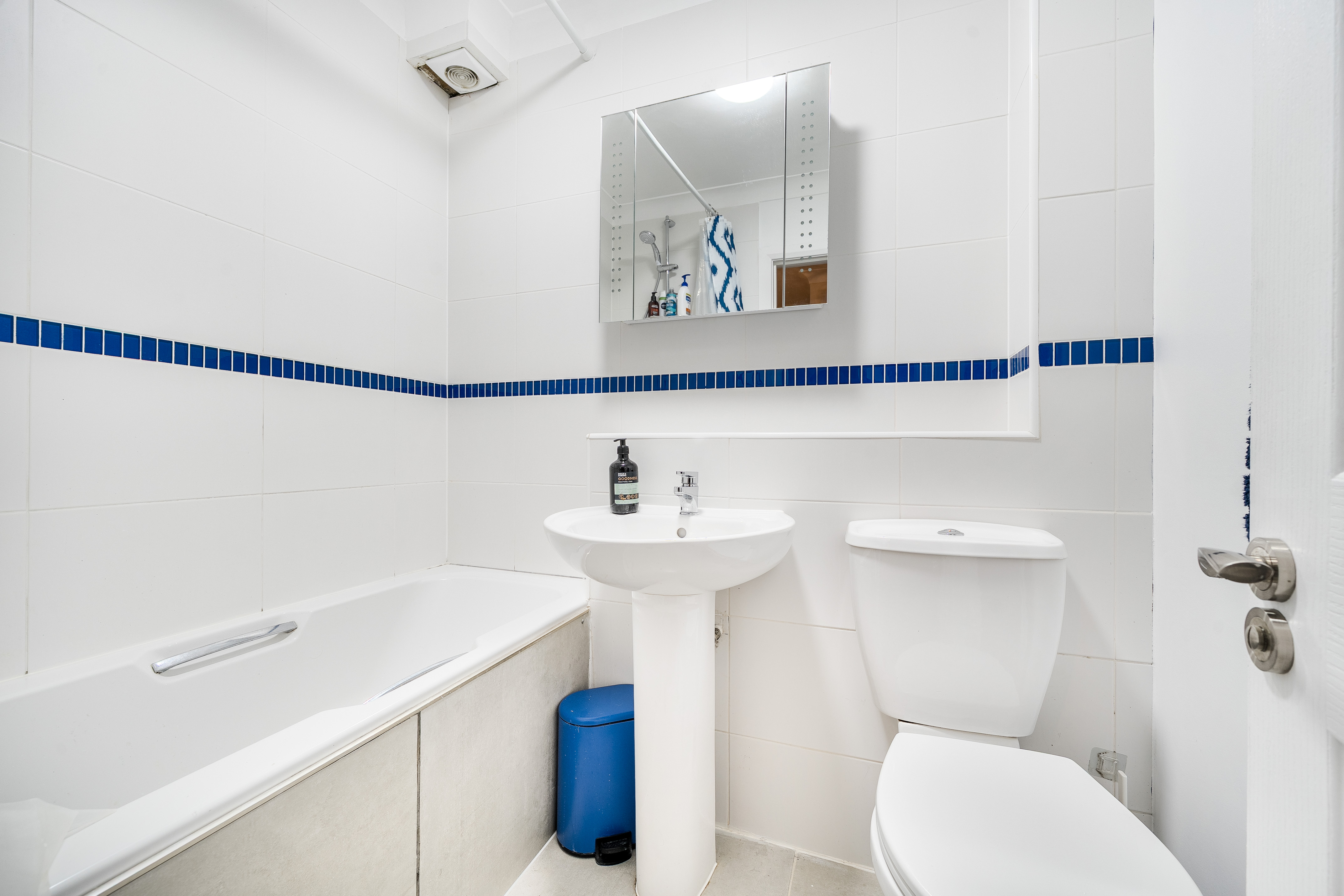Upon entering through the secure communal entrance, you are welcomed into a spacious hallway that serves as the heart of the home, providing access to all primary rooms. To the right, you will find the contemporary family bathroom, which features a crisp and clean design. It is equipped with a bath and shower overhead, a pedestal wash hand basin, and a WC, all finished with stylish tiling to the principal areas.