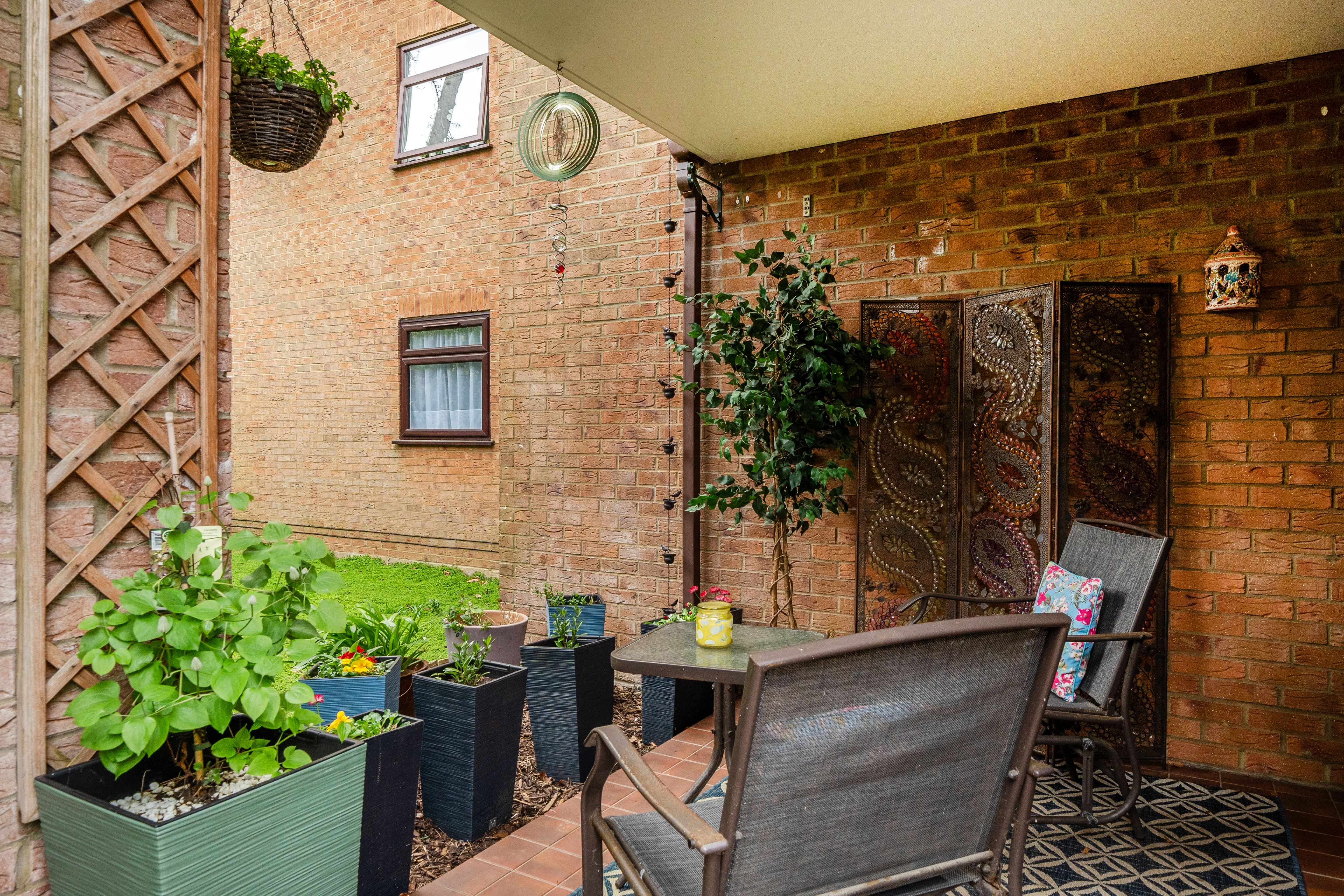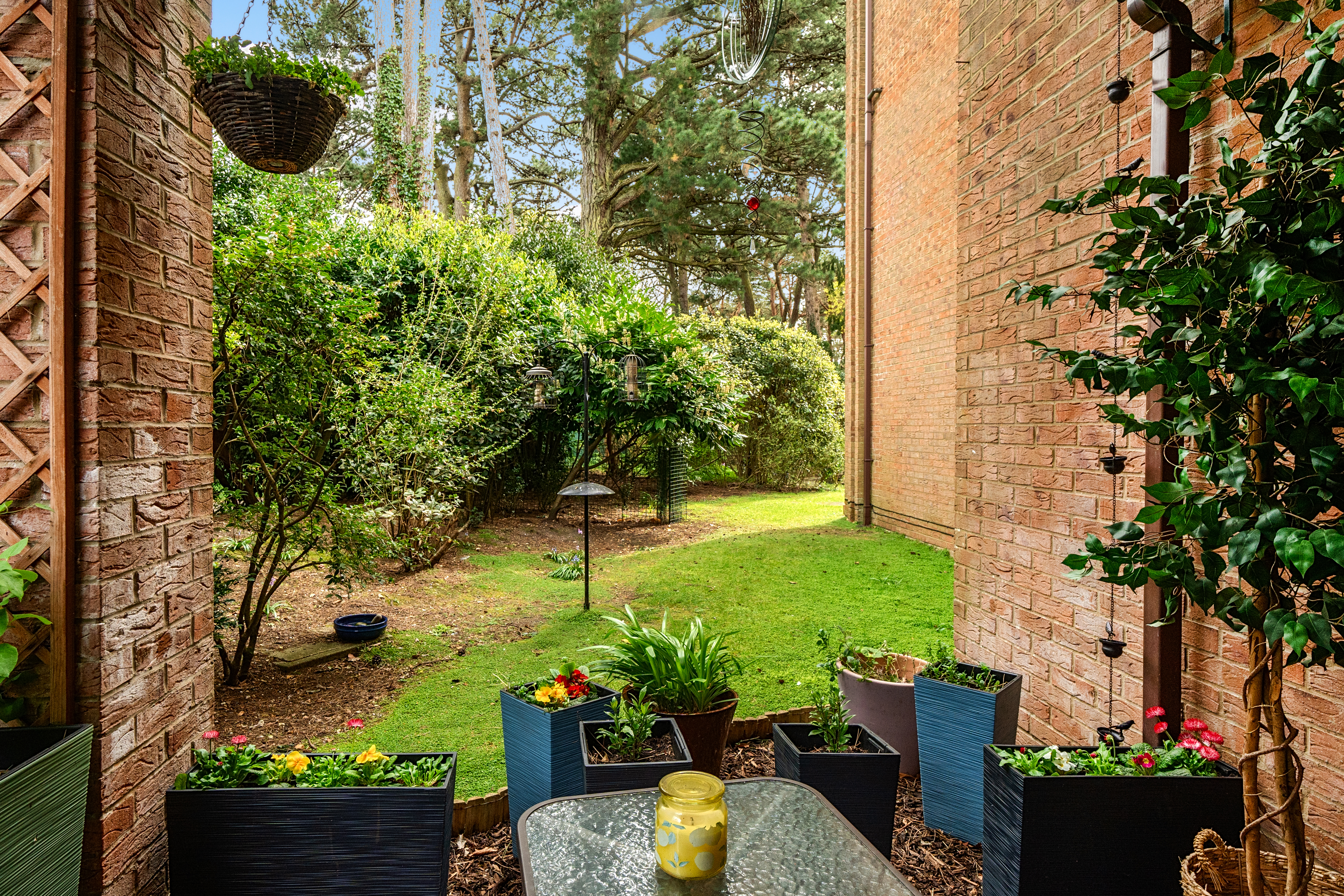 The apartment flows naturally into the impressive lounge and dining area. This bright, airy space is enhanced by dual-aspect window and patio doors that invite an abundance of natural light, complemented by high-quality laminate flooring. For those who enjoy indoor-outdoor living the double-glazed patio doors lead directly from the lounge onto your own personal and private veranda. This outdoor retreat overlooks the beautifully maintained communal gardens, which feature mature shrubs, trees, and expansive lawned areas perfect for relaxation.