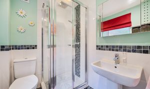 The property continues to impress with two generously sized double bedrooms. The master suite is a particular highlight, boasting fitted wardrobes and a private en-suite shower room. This secondary bathroom includes a single shower enclosure, pedestal wash hand basin, and WC, with extractor ventilation and tasteful tiling.