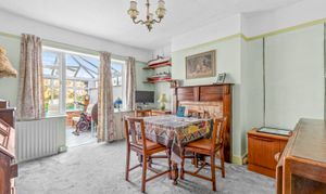 Upon entering, you’re greeted by a warm and welcoming sitting room featuring a cosy fireplace—perfect for relaxing evenings at home. The adjoining kitchen, which faces the rear garden, offers plenty of space and could be opened up or reconfigured to create a more open-plan living area, subject to the necessary permissions—ideal for modern family living and entertaining. The separate dining room also retains its original fireplace, adding character and charm to the space.