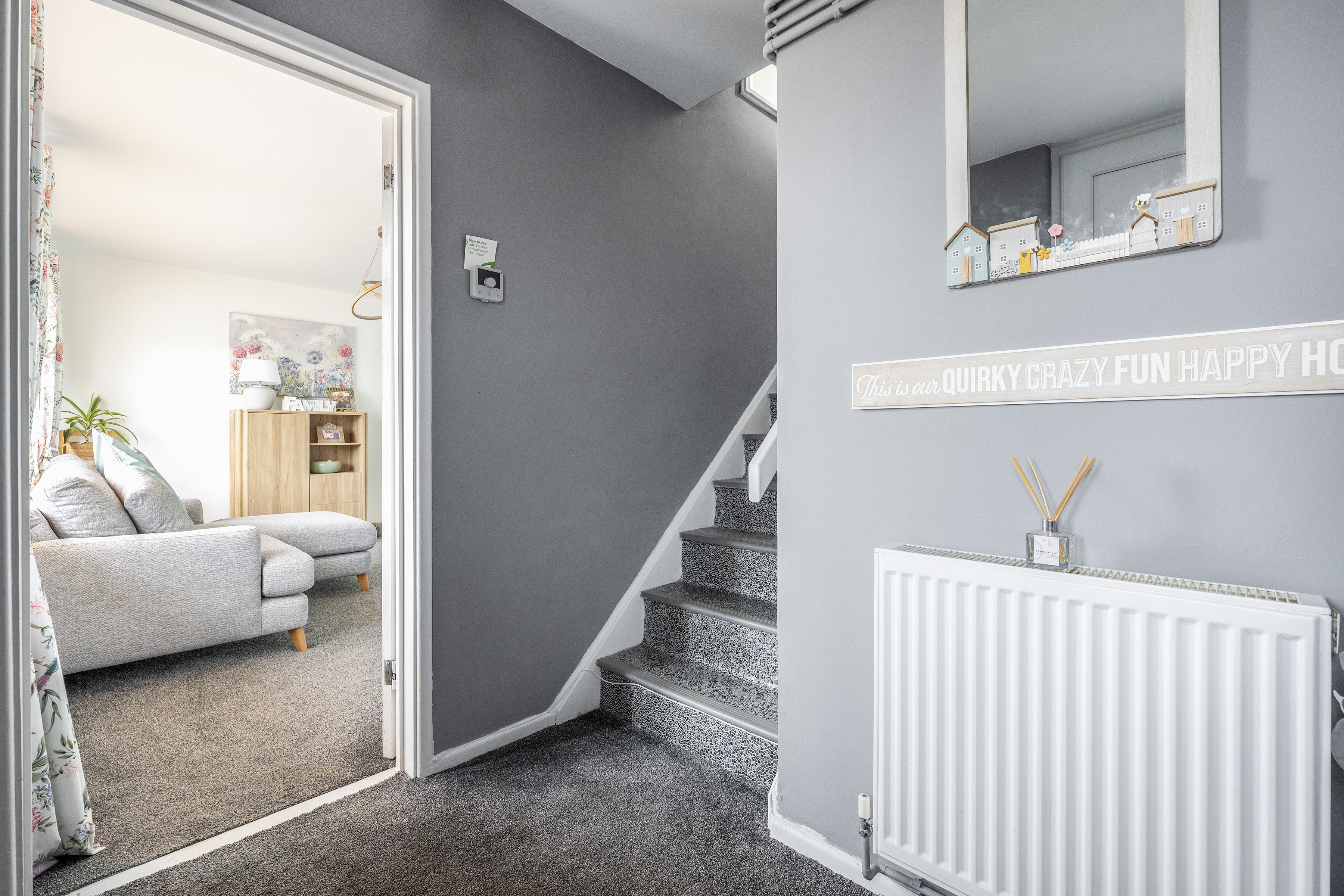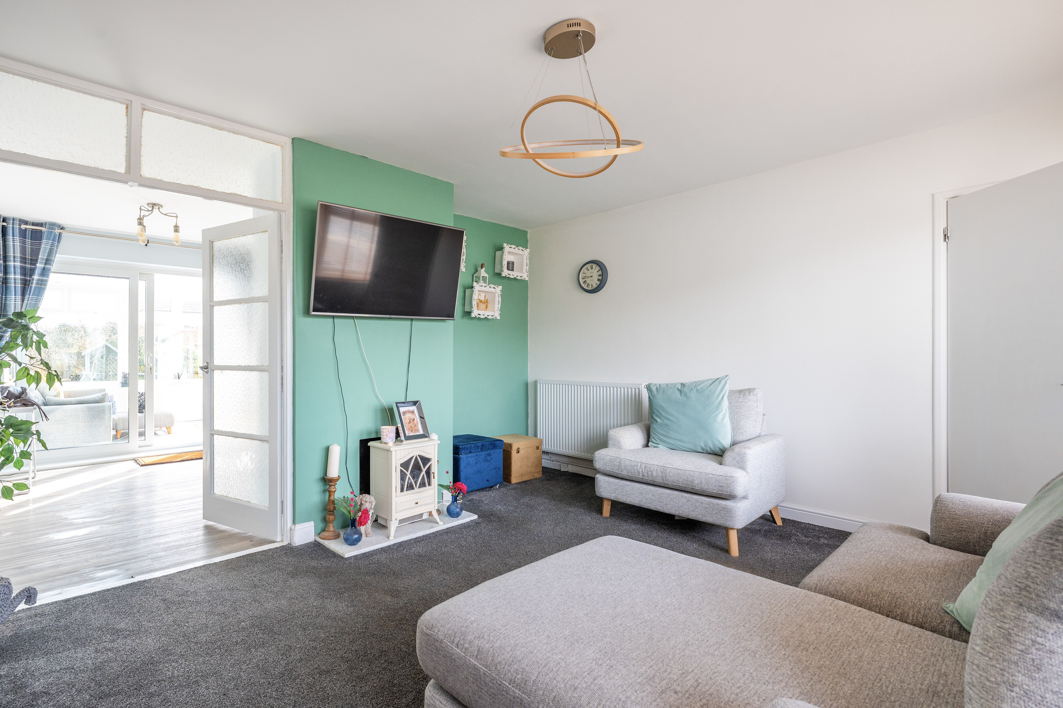The property is approached via a welcoming entrance hall that immediately sets the tone for the home’s bright and airy interior. Finished with new flooring and benefitting from underfloor heating in the conservatory, the hallway provides an inviting introduction while connecting seamlessly to the main living areas.