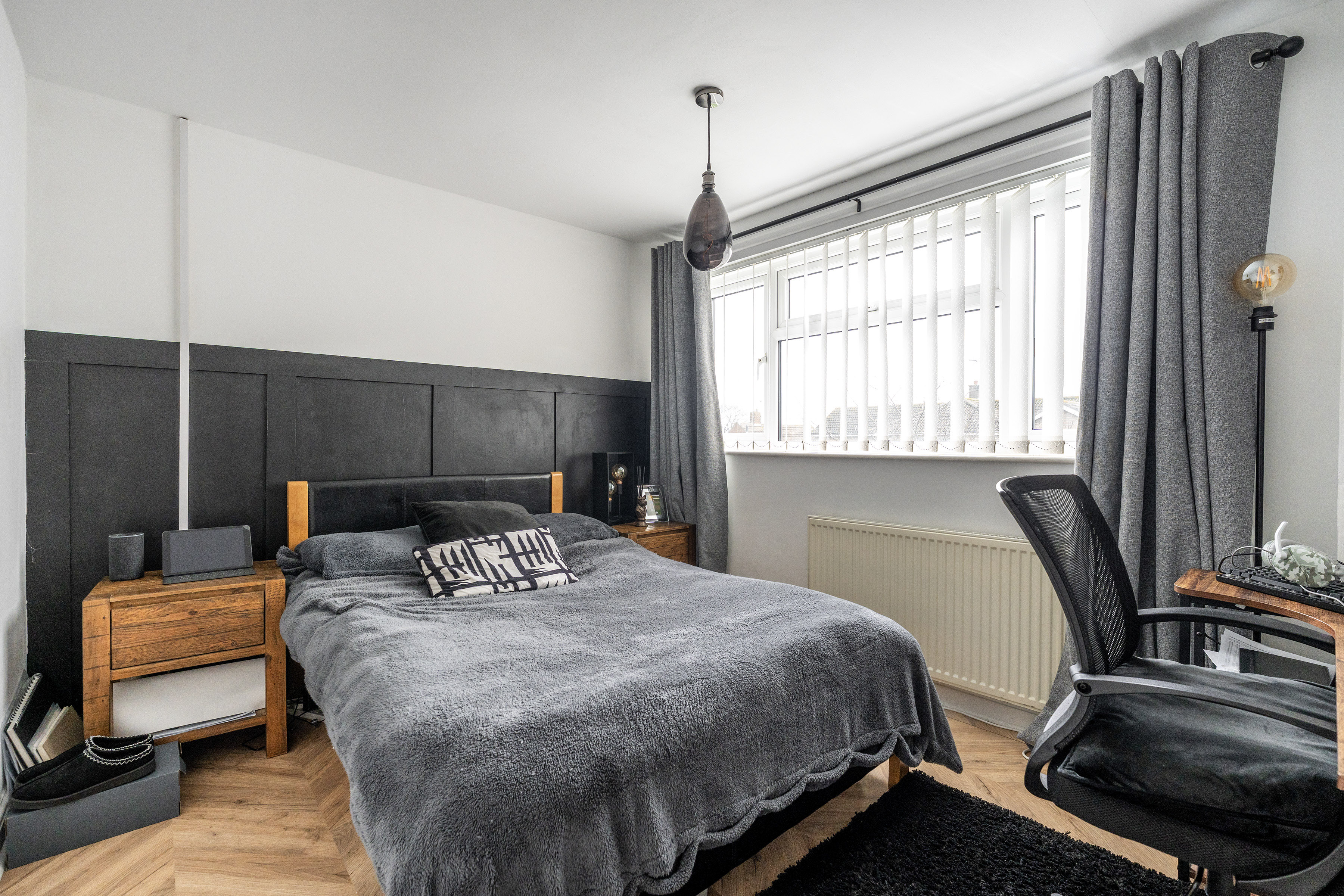 Upstairs, the property offers three well-proportioned bedrooms, each thoughtfully arranged to maximise comfort and flexibility. Two of the bedrooms benefit from built-in storage, while the third room provides adaptable space that could equally serve as a home office, dressing room or nursery depending on individual needs.