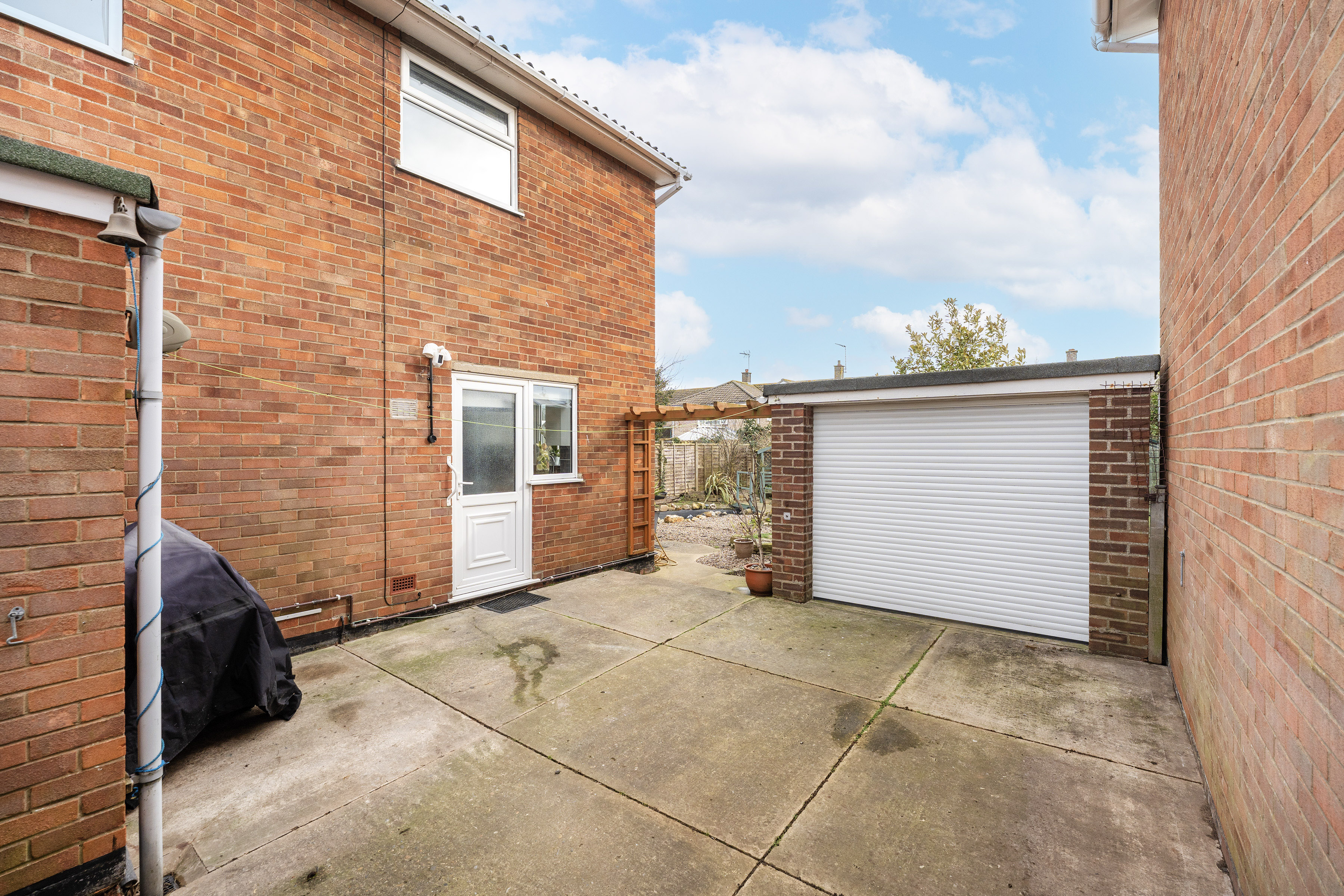- Paved driveway providing off-road parking for multiple vehicles and a brick-built garage suitable for storage or workshop use