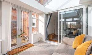 - Conservatory extending the reception space, with French doors opening onto the garden
