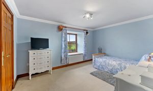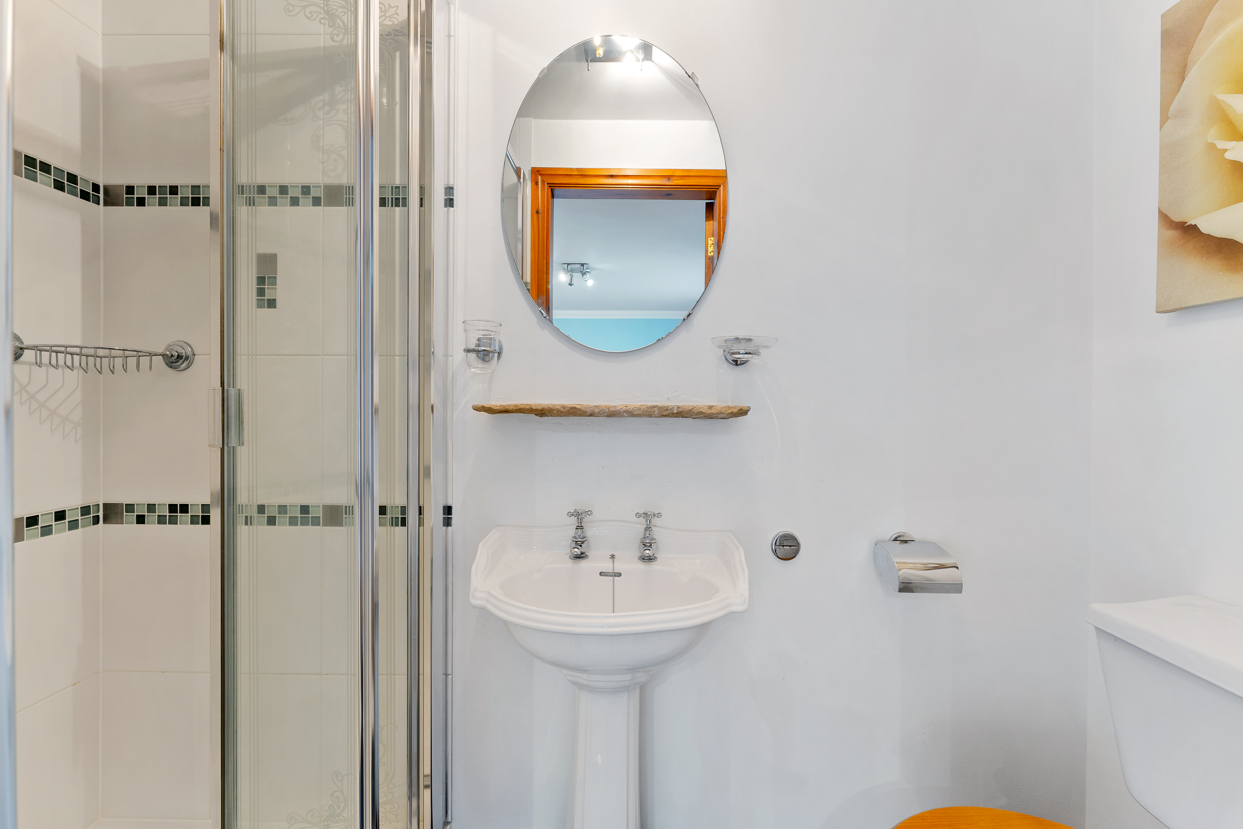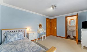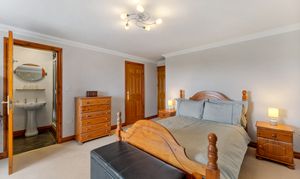 The principal bedroom provides a comfortable retreat, generously sized and positioned to take in the surrounding landscape. It benefits from its own en-suite shower room, creating a practical and private space to unwind.