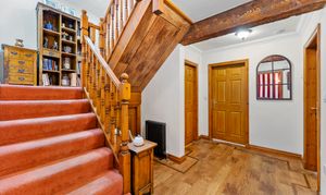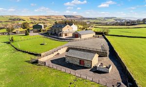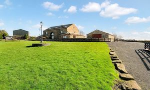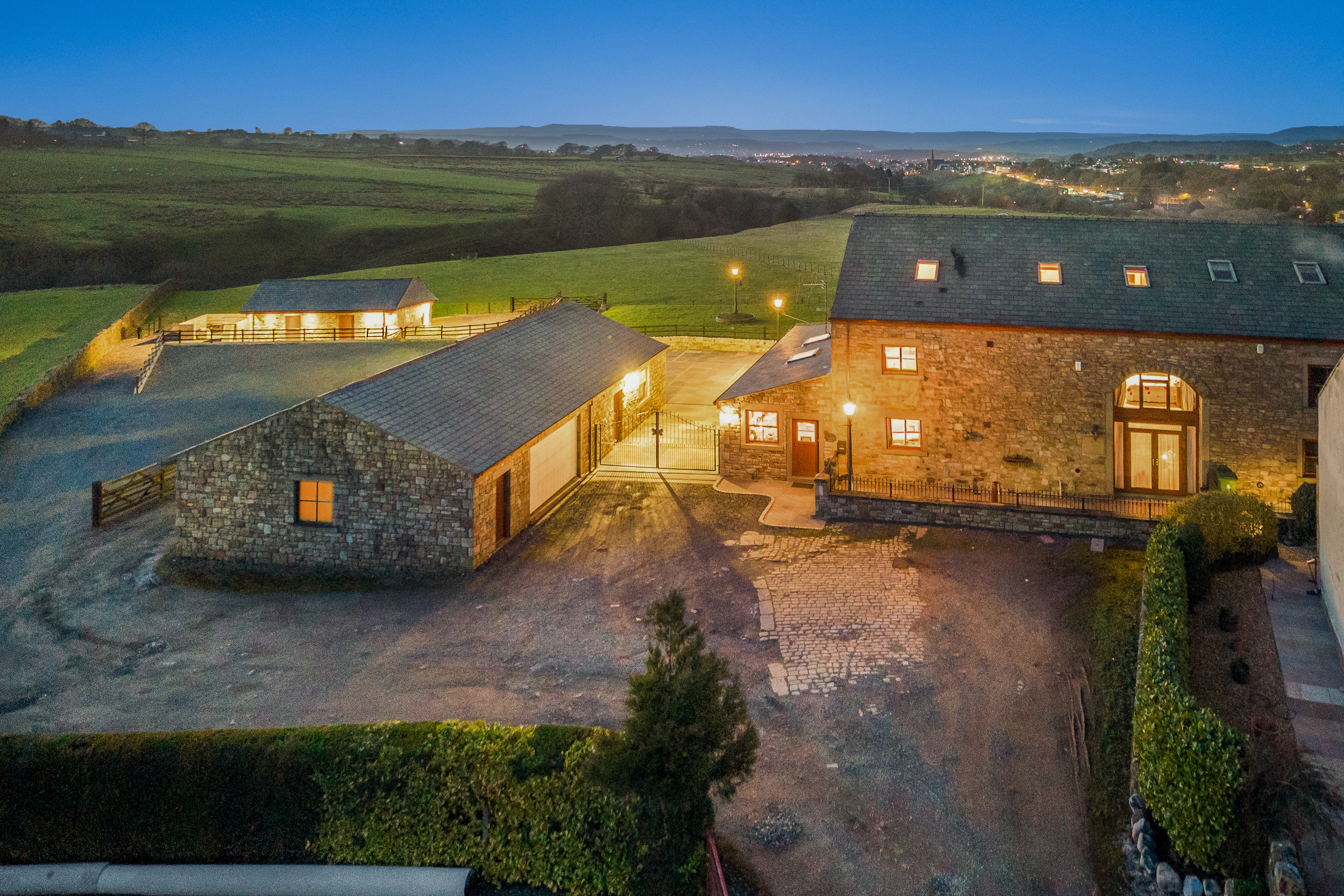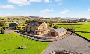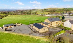 Set within just under three acres of land on the edge of Haslingden, this impressive six-bedroom semi-detached barn conversion arranged across three floors enjoys far-reaching countryside views and a wonderful sense of space and privacy. The property combines traditional character with generous proportions, offering the feel of rural living while remaining conveniently placed for nearby towns and transport links.