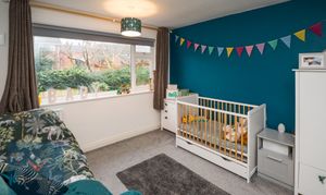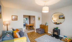 A very well presented and generously proportioned room with modern and stylish decoration. Dual aspect giving a bright and airy feel. Log burner. Open plan design to the dining room and kitchen. Radiator and laminate flooring.