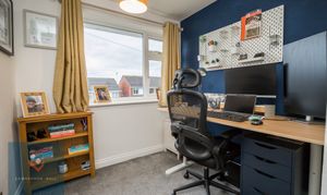A good sized single bedroom, currently used as a home office. Fitted cupboard which has access to the loft. Carpet and radiator.