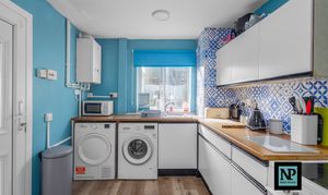 To the rear, the kitchen is fitted with a range of wall and base units, providing generous storage and worktop space. It also opens directly onto the rear garden, making al fresco dining or hosting summer get-togethers a breeze.