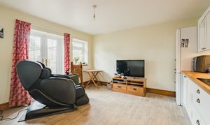 The annexe is a detached brick building offering two bedrooms and two bathrooms over the two floors. There’s a great sized open plan living space with a well fitted kitchen. It’s a home from home and feels substantial and welcoming.