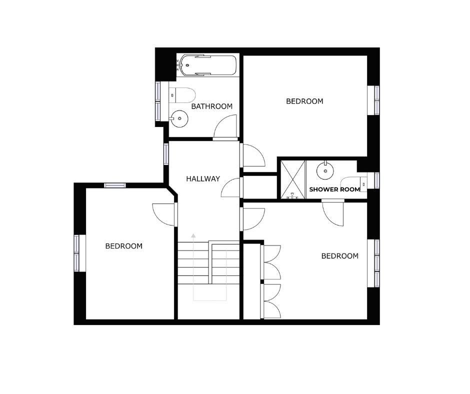 The ground floor comprises an entrance hallway, shower room, utility room, fitted kitchen and three reception rooms. One of the reception rooms offers flexible use and could be arranged as a ground-floor bedroom if required, allowing the layout to adapt to a variety of needs. To the first floor are three bedrooms, including a main bedroom with ensuite facilities, along with a family bathroom.