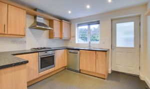 Includes double-glazed door to dining room, stainless steel sink and drainer unit, range of wall and base units with work surfaces over, built-in oven and gas hob with stainless steel chimney hood over, plumbing for washing machine, cupboard housing boiler, and a radiator.
