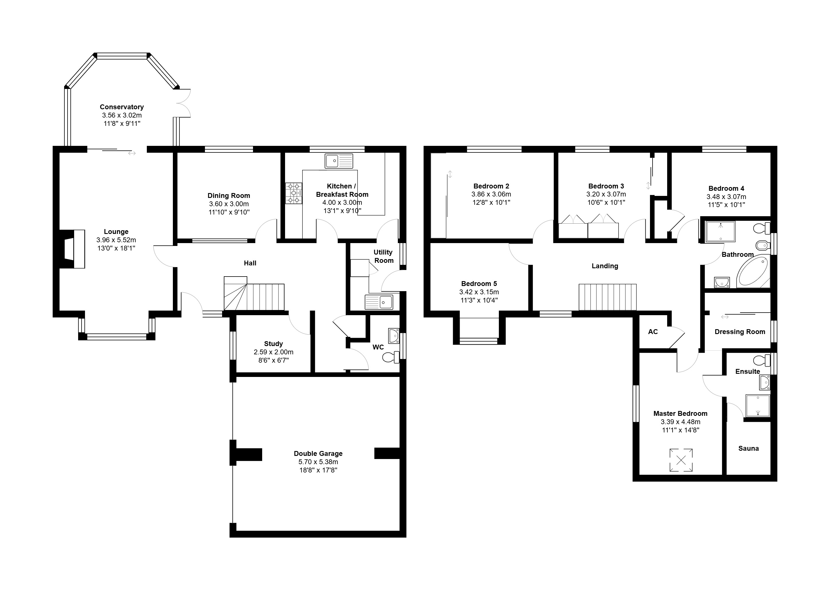 - Master bedroom boasts a dressing area, en suite shower room and a sauna