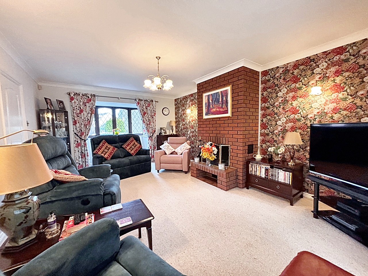 - Warm and inviting living room with a feature open fire