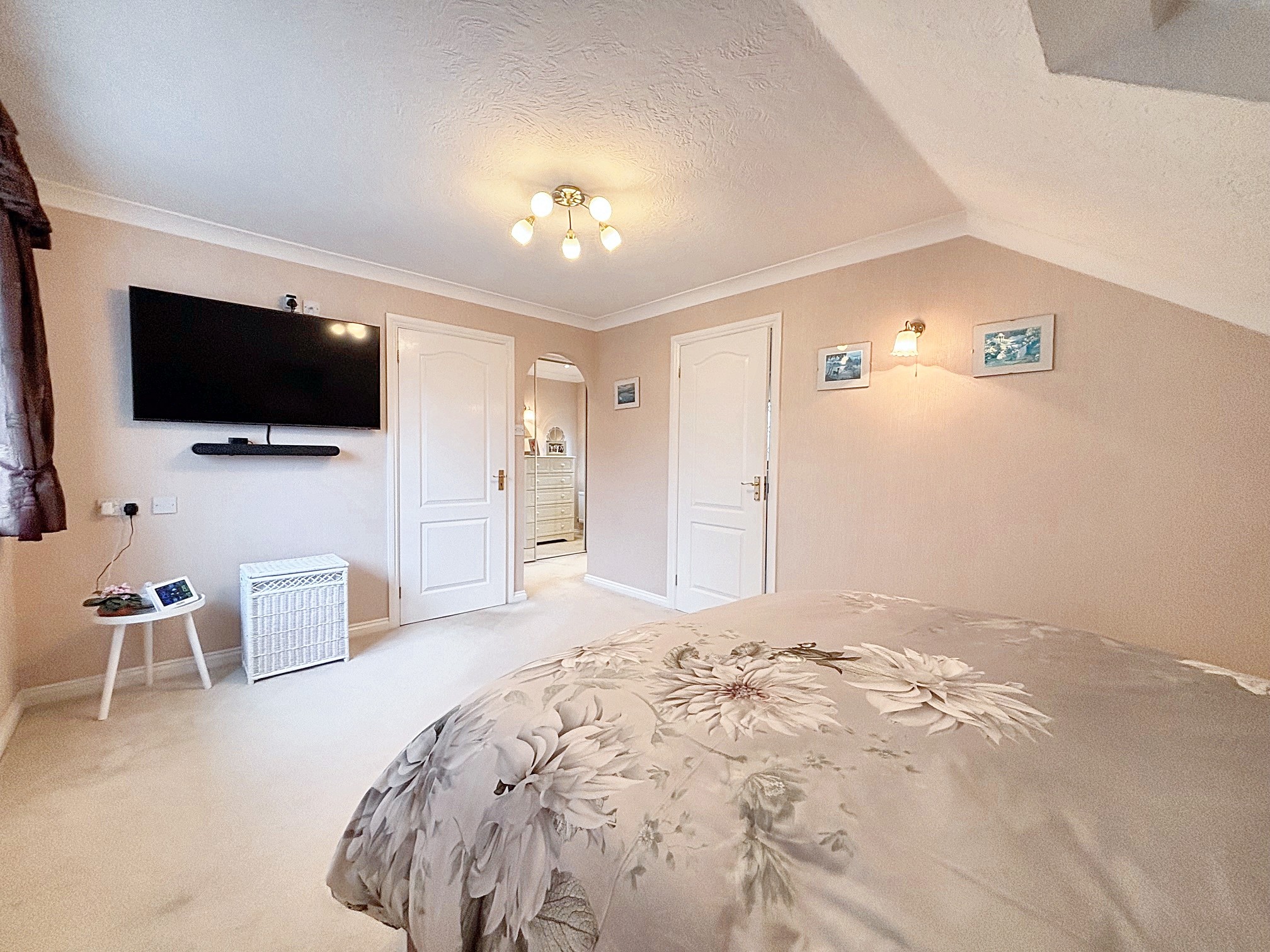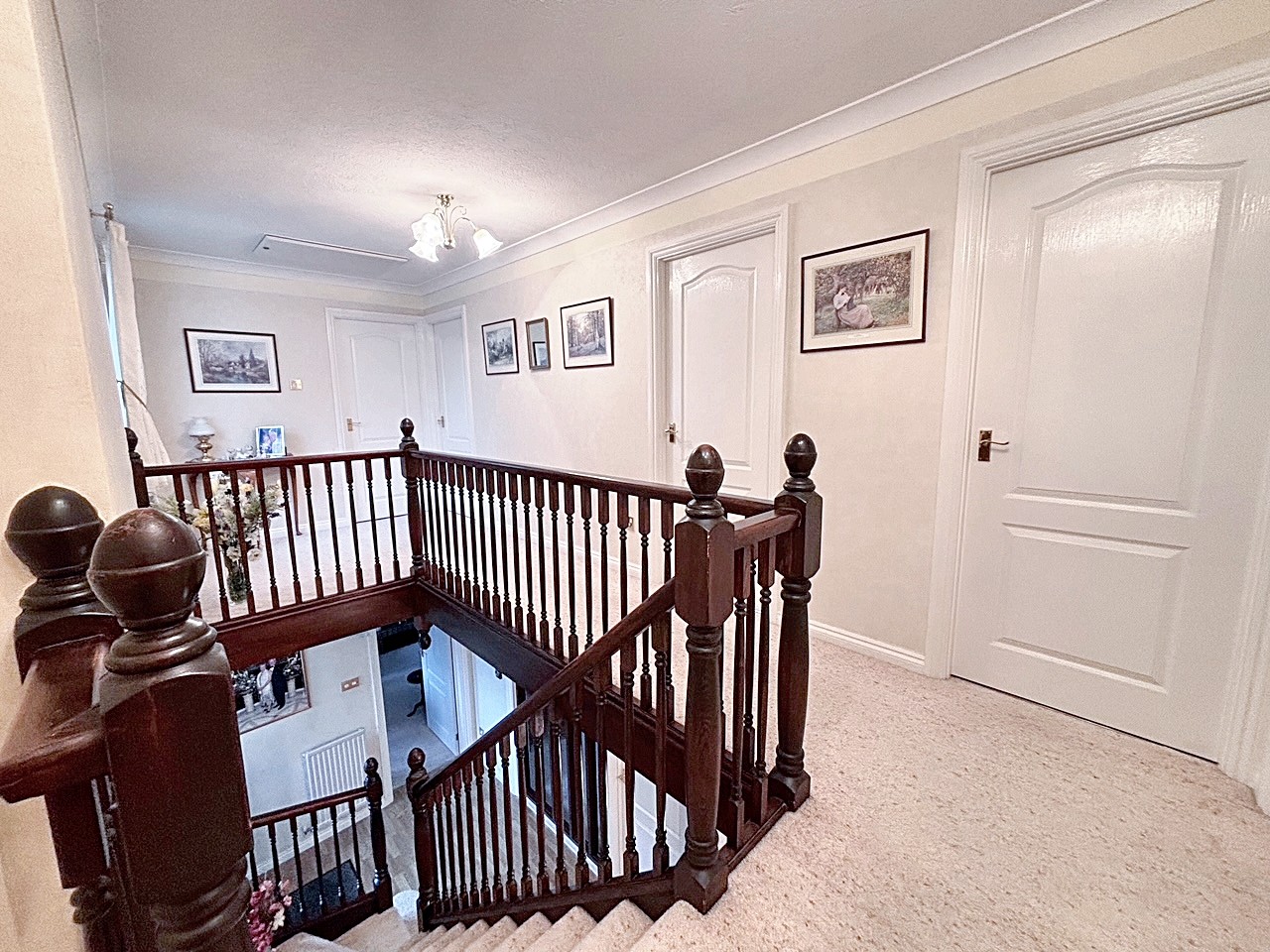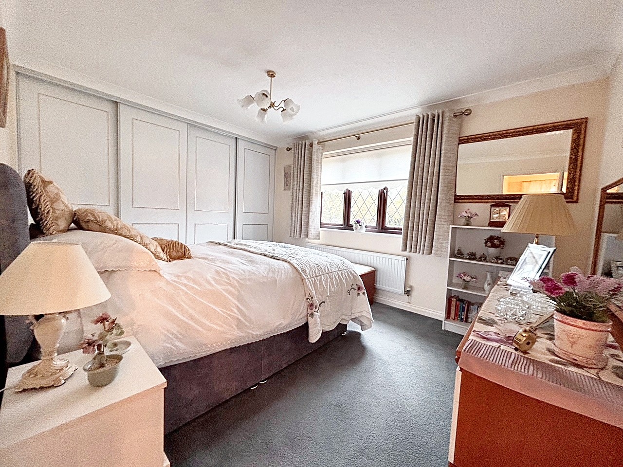 Upstairs, a galleried landing leads to five bedrooms; four of which are double bedrooms with fitted wardrobes, while the fifth is a generously sized single room. The master bedroom is a true retreat, featuring a dressing area, en suite shower room, and even a sauna for ultimate relaxation. The beautifully maintained rear garden provides ample space for children to play and boasts three patio areas for outdoor entertaining. The property’s exterior reflects the same level of care and attention to detail as the interior, creating a harmonious blend of comfort, style, and functionality that makes this home a truly special find. A large double garage and ample driveway parking complete this exceptional home, with the added benefit of a new boiler fitted in November 2025.