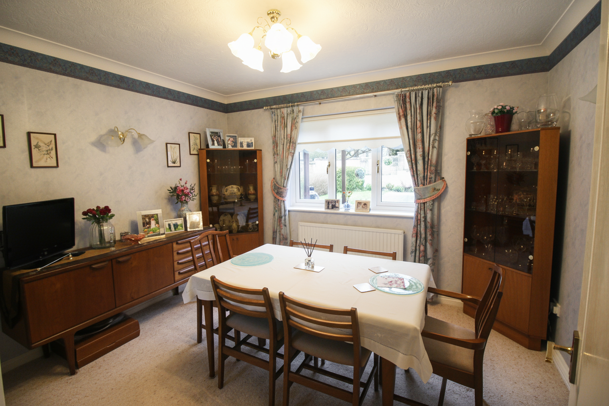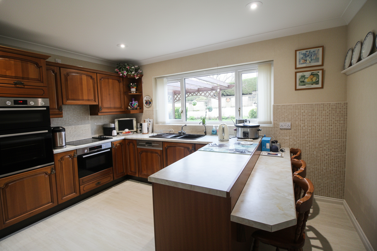 This bespoke, detached home, situated on a popular Thornbury road, exudes character and warmth. Built by the loving owners who have meticulously cared for it over the past 30 years, it stands as a testament to their craftsmanship and dedication. The property's prime location is a mere stone's throw from good primary schools and all essential local amenities, making it an ideal family setting.