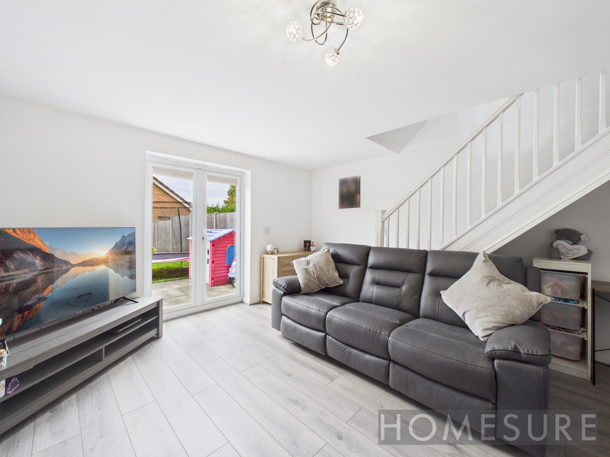 This attractive semi-detached house offers a superb blend of modern comfort and family-friendly features. The home comprises two well-proportioned bedrooms equipped with built-in storage for a clean and organised feel. The bright and airy interiors are enhanced by natural light streaming through large windows, creating a welcoming atmosphere throughout. The spacious reception room serves as the heart of the home, featuring a contemporary fireplace, stylish feature wall, and French doors that open directly to the garden, seamlessly connecting indoor and outdoor living. The modern kitchen is fitted with sleek cabinetry, integrated appliances, and chic tiled flooring, making it a perfect space for cooking and entertaining.