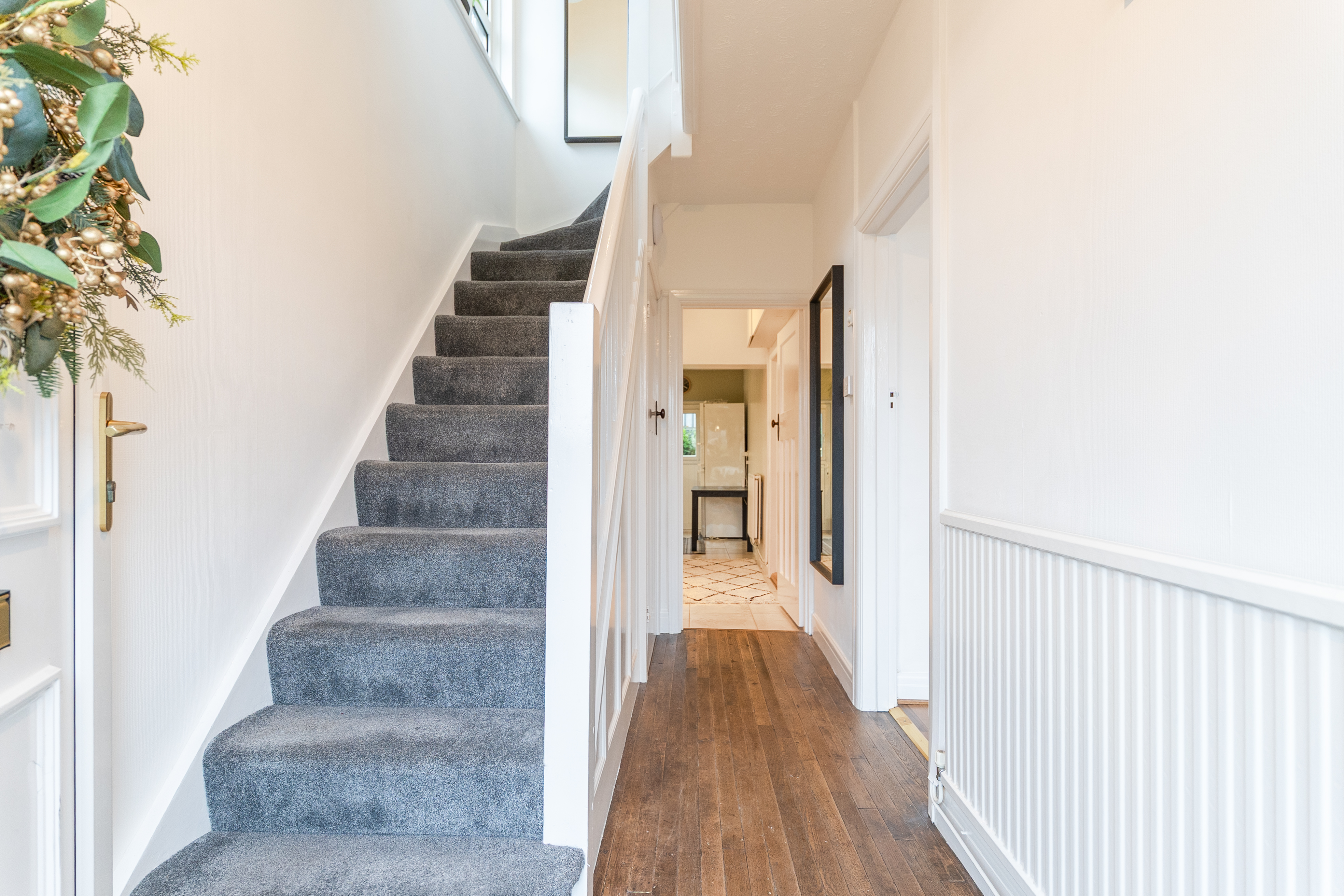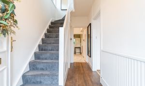 The first floor comprises three bedrooms and the family bathroom. There are two comfortable double bedrooms, both benefiting from built-in storage, along with a well-proportioned single room suitable for a child’s bedroom, home office or nursery. The bathroom serves all bedrooms and completes the internal accommodation.
