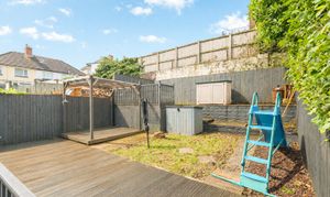 Externally, the property occupies an elevated plot, enhancing its outlook and kerb appeal. Off the road there is a hardstanding area with an electric supply, offering potential for the installation of an electric vehicle charging point. A pathway leads up to the front entrance, with a front garden area and side access through to the rear. The rear garden is attractively tiered, featuring a variety of decking and seating areas ideal for outdoor entertaining and relaxation. The property further benefits from air conditioning, adding to its comfort and modern appeal.
