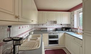 Accessed via a secure communal entrance and staircase the flat with UPVC double glazing throughout opens to a central entrance hall with storage cupboards. The living room with outlook over the south facing communal garden to the rear of the building is large enough for lounge and dining space. Adjoining the living there is separate kitchen which is well-equipped with a range of floor and wall units. Both bedrooms are well-proportioned with the larger of the two having a built in cupboard for additional storage. The bathroom has an over bath shower and another cupboard for further storage.