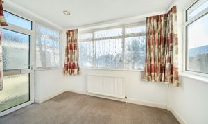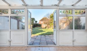 The main reception room is well proportioned and benefits from a large bay window allowing for good natural light. The kitchen is fitted with a range of units providing practical workspace and storage, and opens through to the conservatory which acts as an additional living space overlooking the garden. The conservatory provides direct access to the patio and garden, creating good indoor and outdoor flow, while the bedroom is a comfortable double room with built in storage and the bathroom is fitted with a bath and overhead shower.