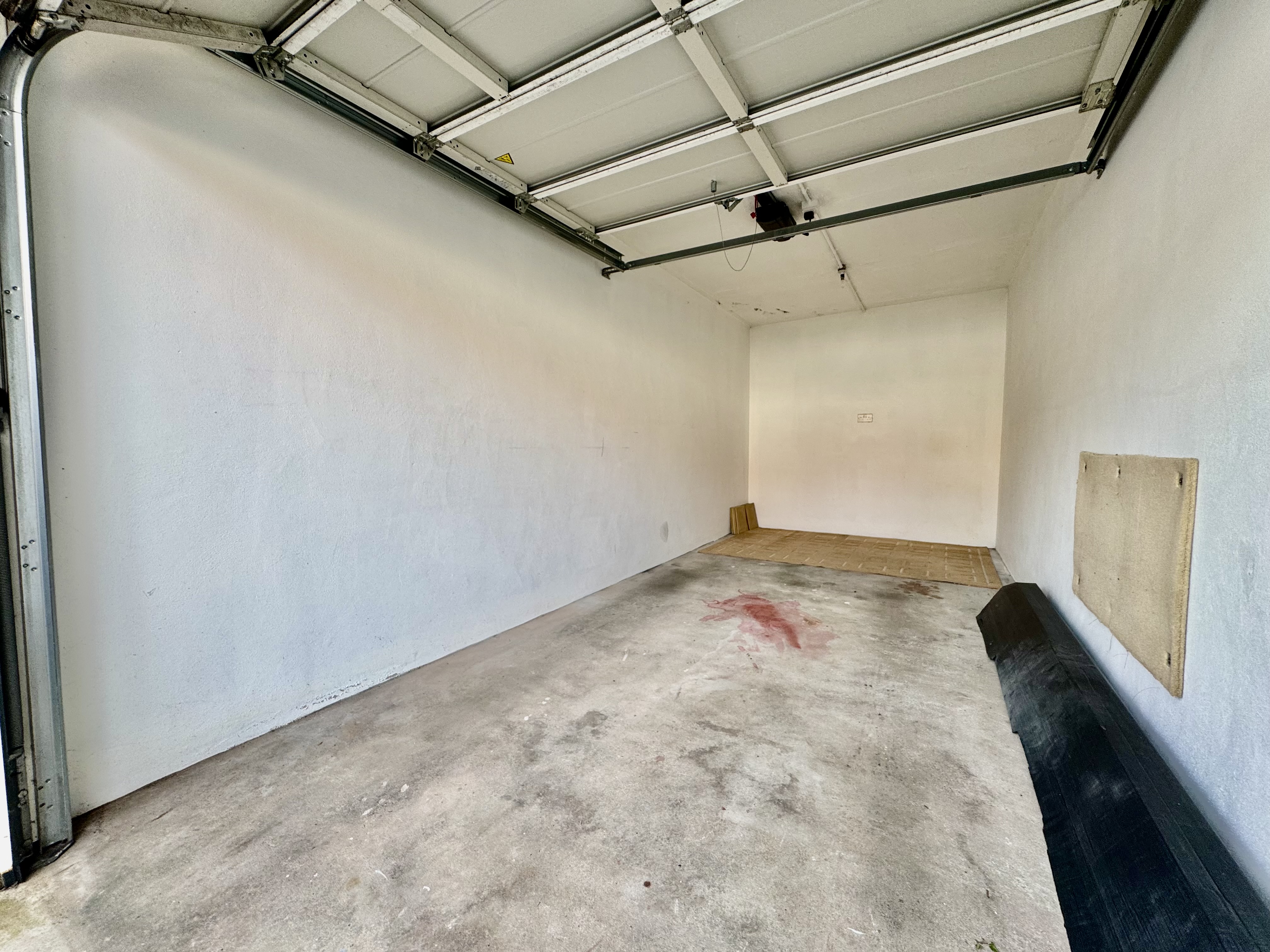 To the exterior there is a private garage and parking space outside of the garage.