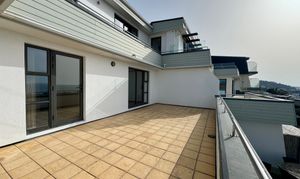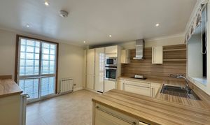 The apartment features a contemporary, fully fitted kitchen designed with both style and practicality in mind. A spacious and light-filled living area benefits from an abundance of natural light and opens directly onto the terrace, creating a seamless connection between indoor and outdoor living.