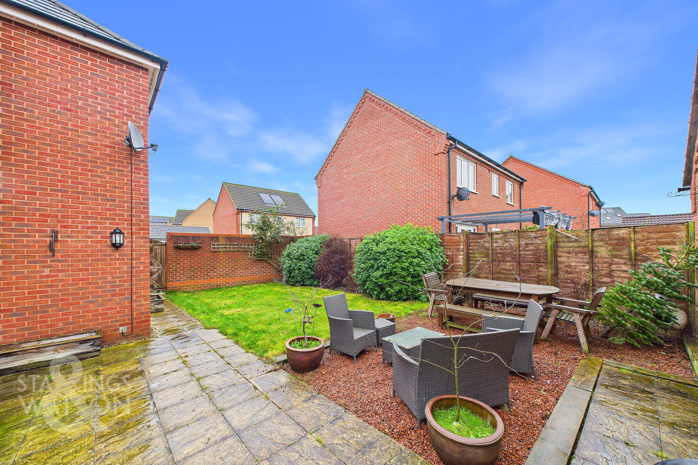- Enclosed Gardens with Central Lawn & Patio Area