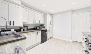 Once inside, the hall entrance offers the ideal meet and greet space with wood effect flooring underfoot, stairs rising to the first floor landing and doors leading off to the main living and kitchen accommodation. The sitting room sits to the rear of the property with dual aspect views to side and rear including the sash window to side and French doors leading out to the rear garden. Wood effect flooring flows underfoot with useful storage built-in under the stairs. The adjacent dining room also enjoys dual aspect views via the front and side facing sash windows, with continued wood effect flooring and a range of versatile uses, ideally as a home office or snug seating area. The ground floor W.C is a sizeable room and finished with a white two piece suite including tiled splash-backs with ample space for a washing machine and tumble dryer, with continued wood effect flooring and sash window to front. The kitchen completes the ground floor having been re-fitted with a modern range of wall and base level units, including integrated appliances comprising an inset electric ceramic hob and built-in electric double oven, with glass splash-back and extractor fan. Space is provided for a dishwasher whilst the fridge freezer is also integrated. Matching up-stands run around the work surface with wood effect flooring underfoot and a window and door taking you to the rear garden.