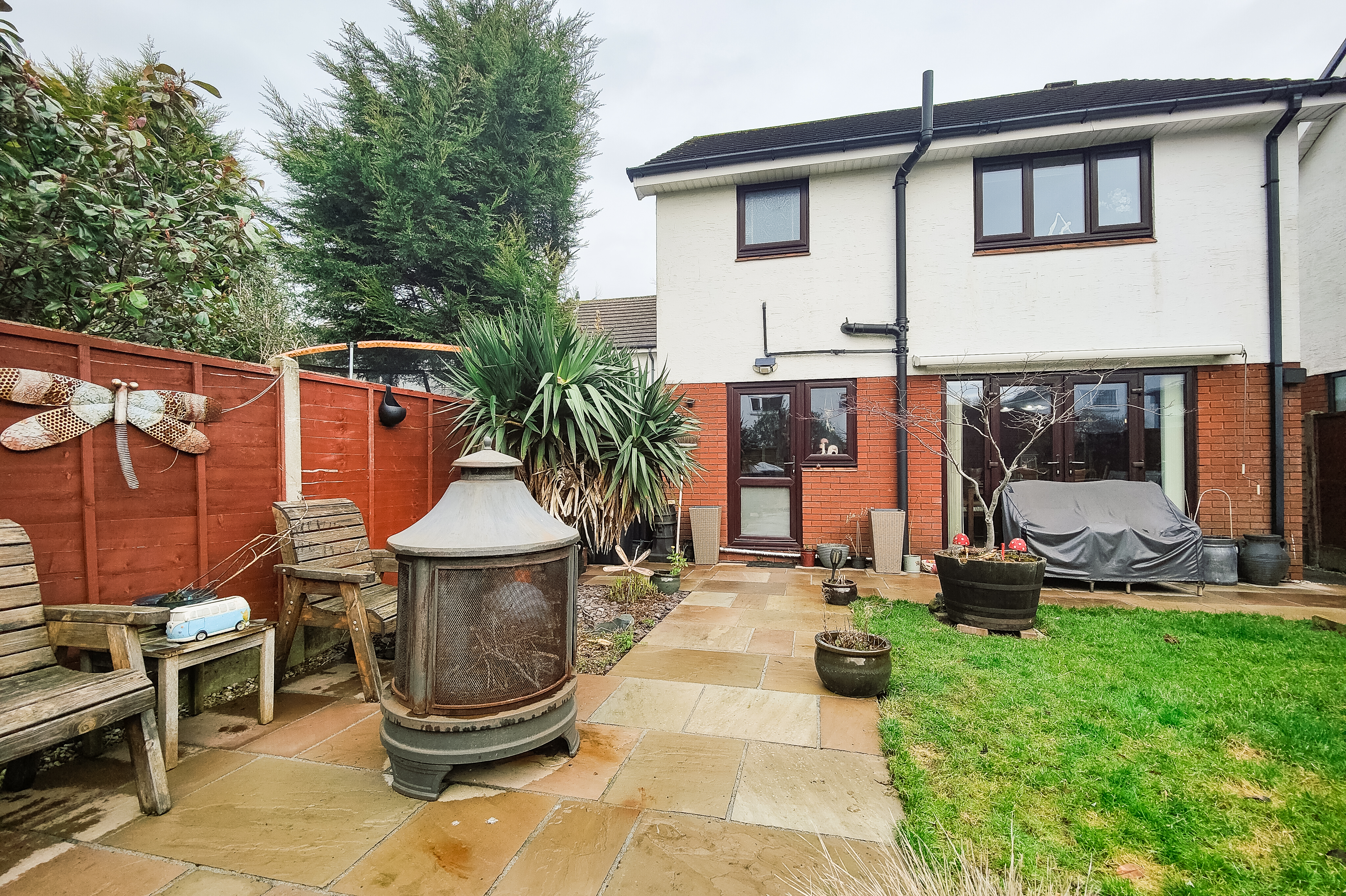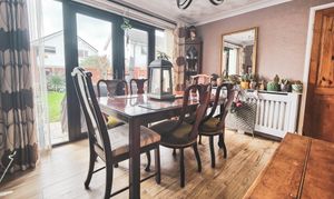 Set back on a peaceful residential cul de sac, this refined three-bedroom detached family home presents an exceptional opportunity for those seeking both comfort and sophistication. The property unfolds into a welcoming entrance hall, leading to an expansive open-plan living and dining area, where natural light pours in through elegant French doors. The contemporary kitchen is thoughtfully appointed. Each of the three generous bedrooms is beautifully proportioned, with ample storage and serene outlooks, while the modern family bathroom boasts a three piece suite with over bath shower. Additional highlights include a spacious garage and private driveway, providing convenient parking and storage. The property is offered with no onward chain, ensuring a seamless transition for discerning buyers. Located in a much sought-after area, residents will enjoy close proximity to excellent local amenities, reputable schools, and swift access to the Link Road and M6, making commuting and daily errands effortless.
