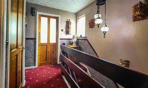 Head upstairs and you'll find three genuinely generous bedrooms. There's no awkward box room squeezed in as an afterthought—each room offers proper, usable space for growing families. The family bathroom features a three-piece suite with an over-bath shower, while the light-filled landing benefits from a side window that floods the space with natural light.